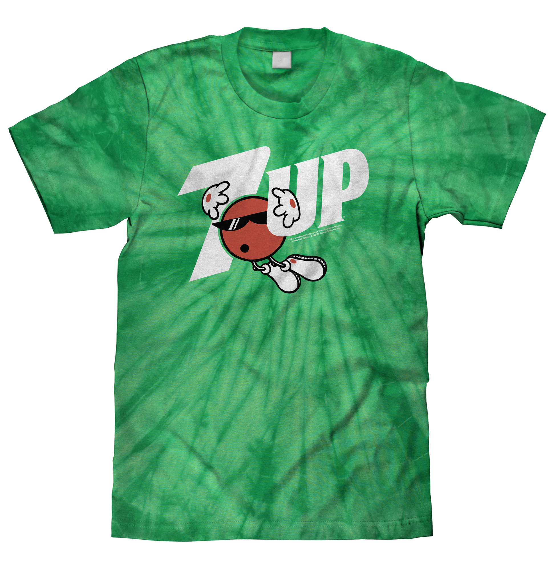 Bursting with crisp and refreshing lemon-lime flavor in every drop - bubbly 7UP is definitely our favorite un-cola! We've paid tribute to this delicious soda with a throwback graphic tee featuring the classic 7UP logo and cartoon mascot "Cool Spot". To complete the vintage look and feel on this retro tee - we've printed the graphic on a soft, Spider Kelly tie dye t-shirt.