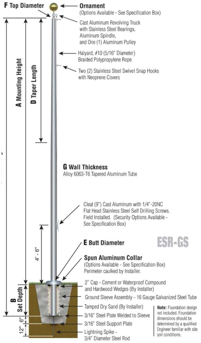 Ground Sleeve with Lightning Rod (Included) – Safety first—your flagpole is ready for anything.