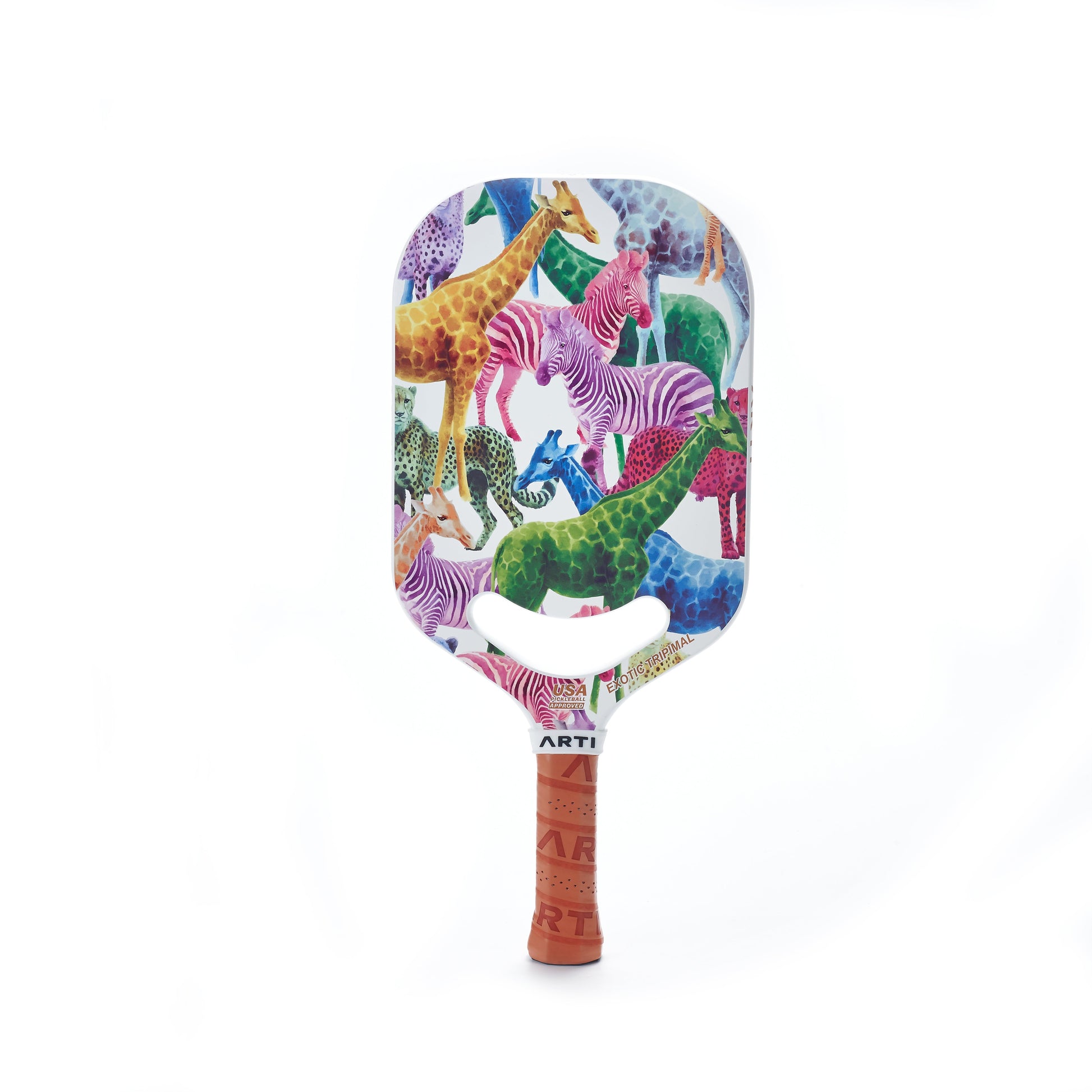 Get ready to trip out with the "Exotic Tripimal" paddle! This bad boy’s rocking a kaleidoscope of neon zebras, groovy giraffes, and colorful cheetahs that’ll have you feeling like you’re on a safari in another dimension. It’s wild, it’s weird, and it’s 100% made for players who aren’t afraid to stand out. So go ahead – grab the "Exotic Tripimal," unleash your inner party animal, and bring a little jungle madness to the court!