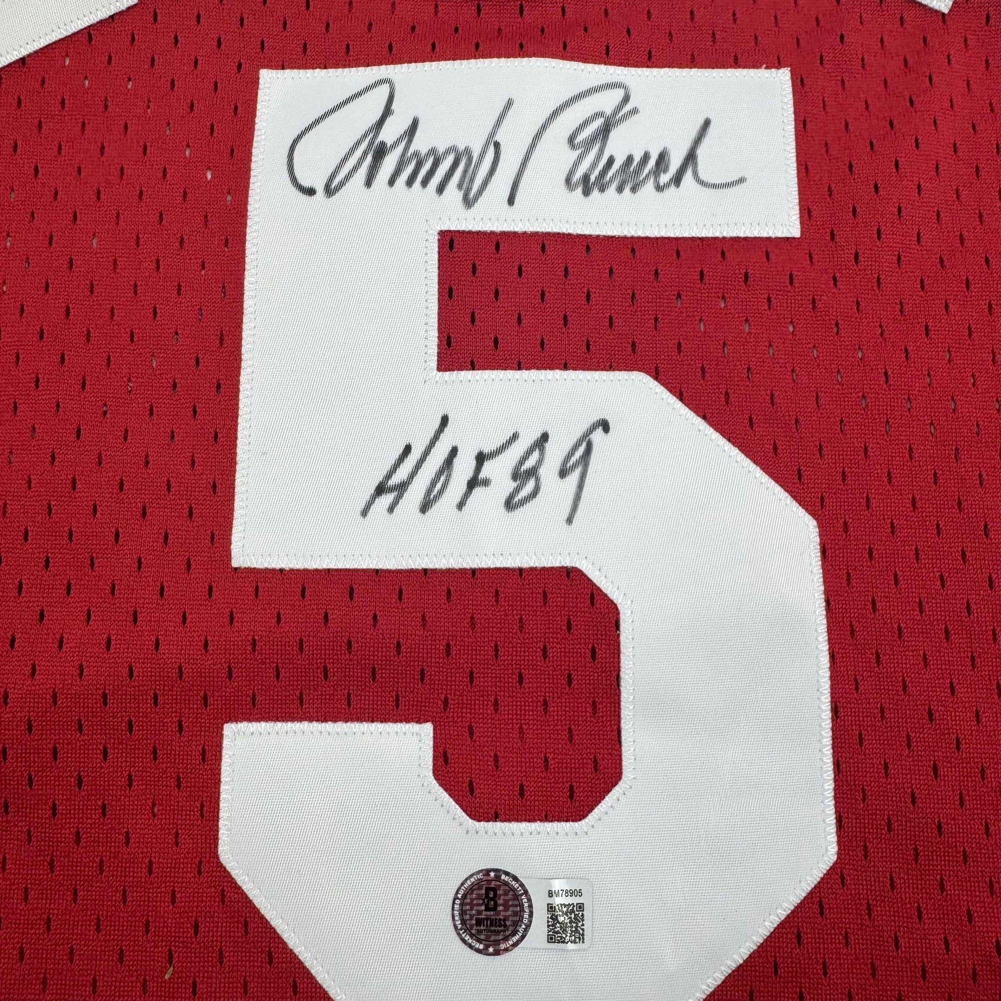 Autographed/Signed Johnny Bench HOF 89 Cincinnati Red Baseball Jersey Beckett BAS COA