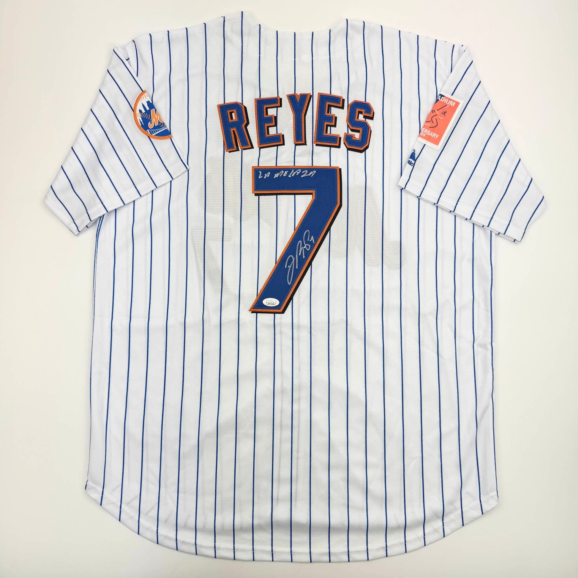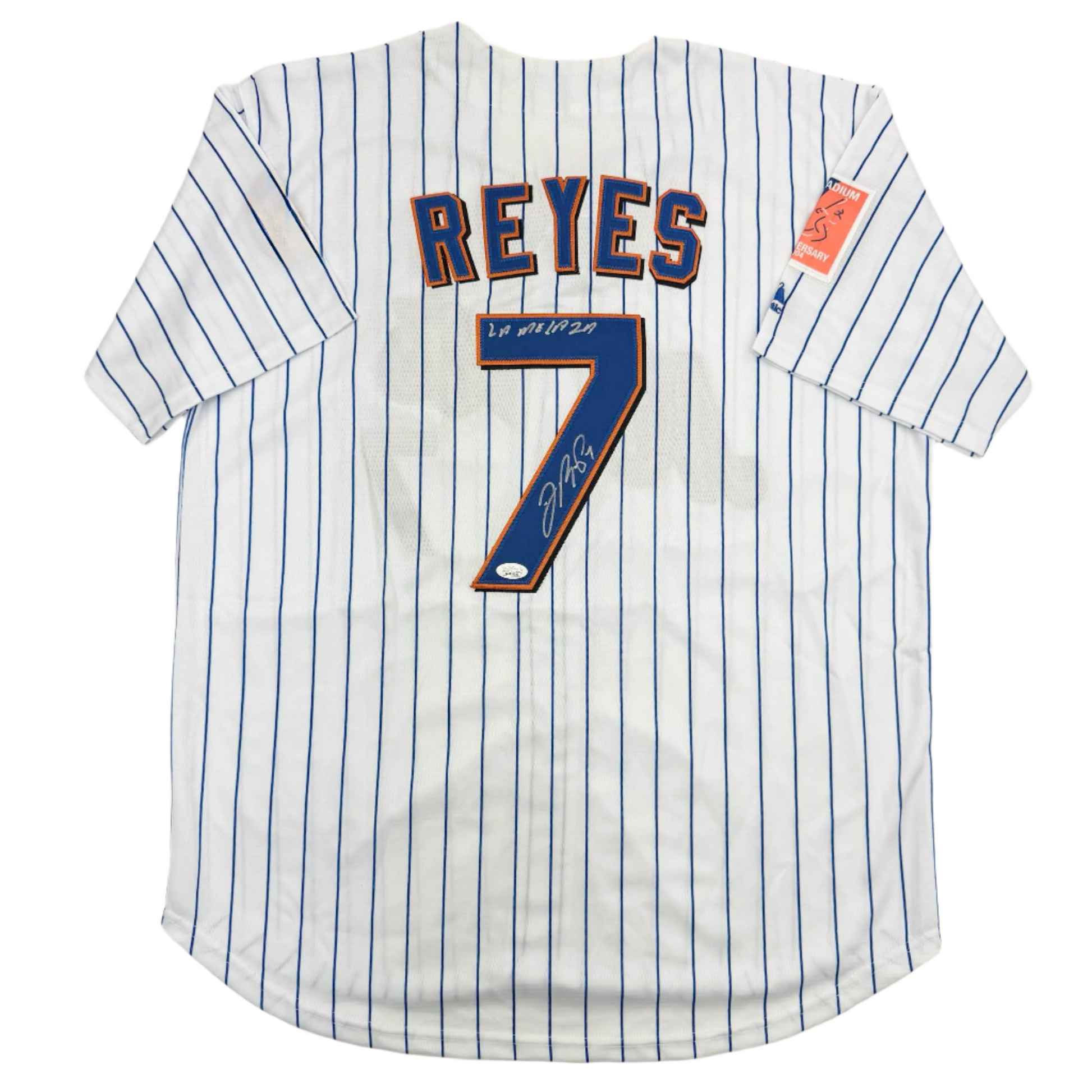 Autographed/Signed Jose Reyes New York Pinstripe Baseball Jersey JSA COA