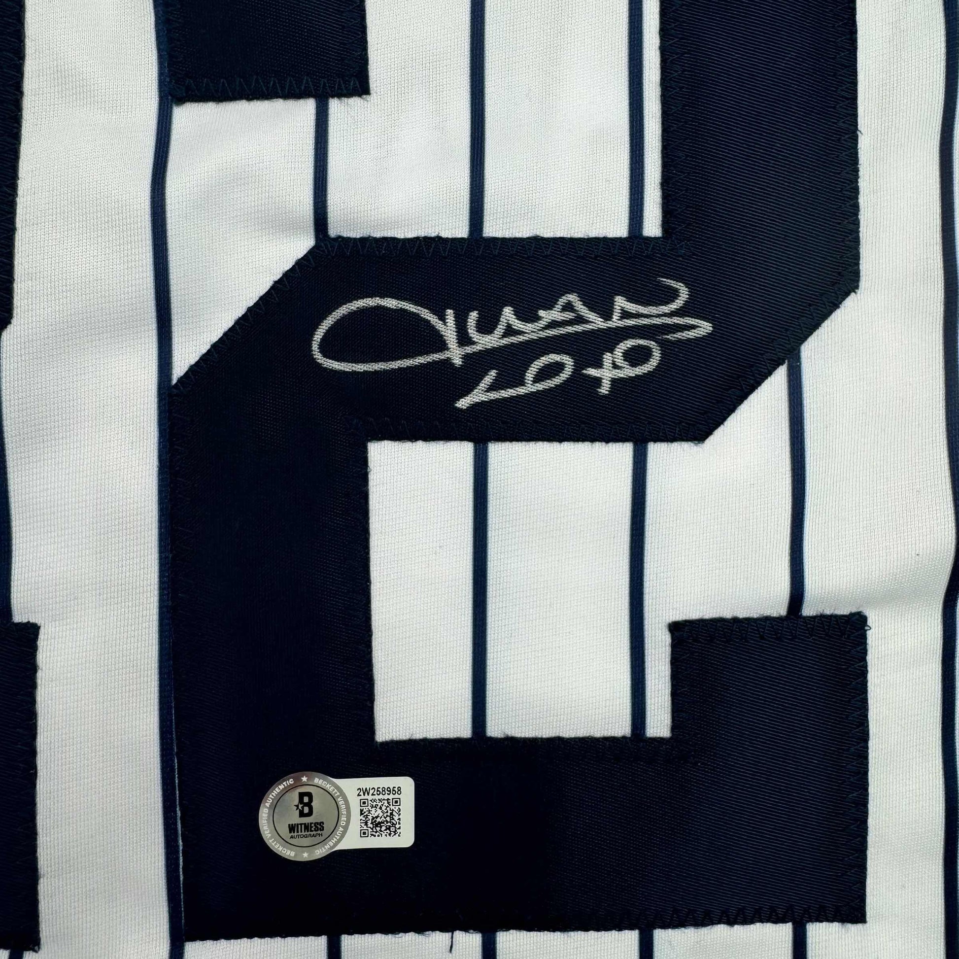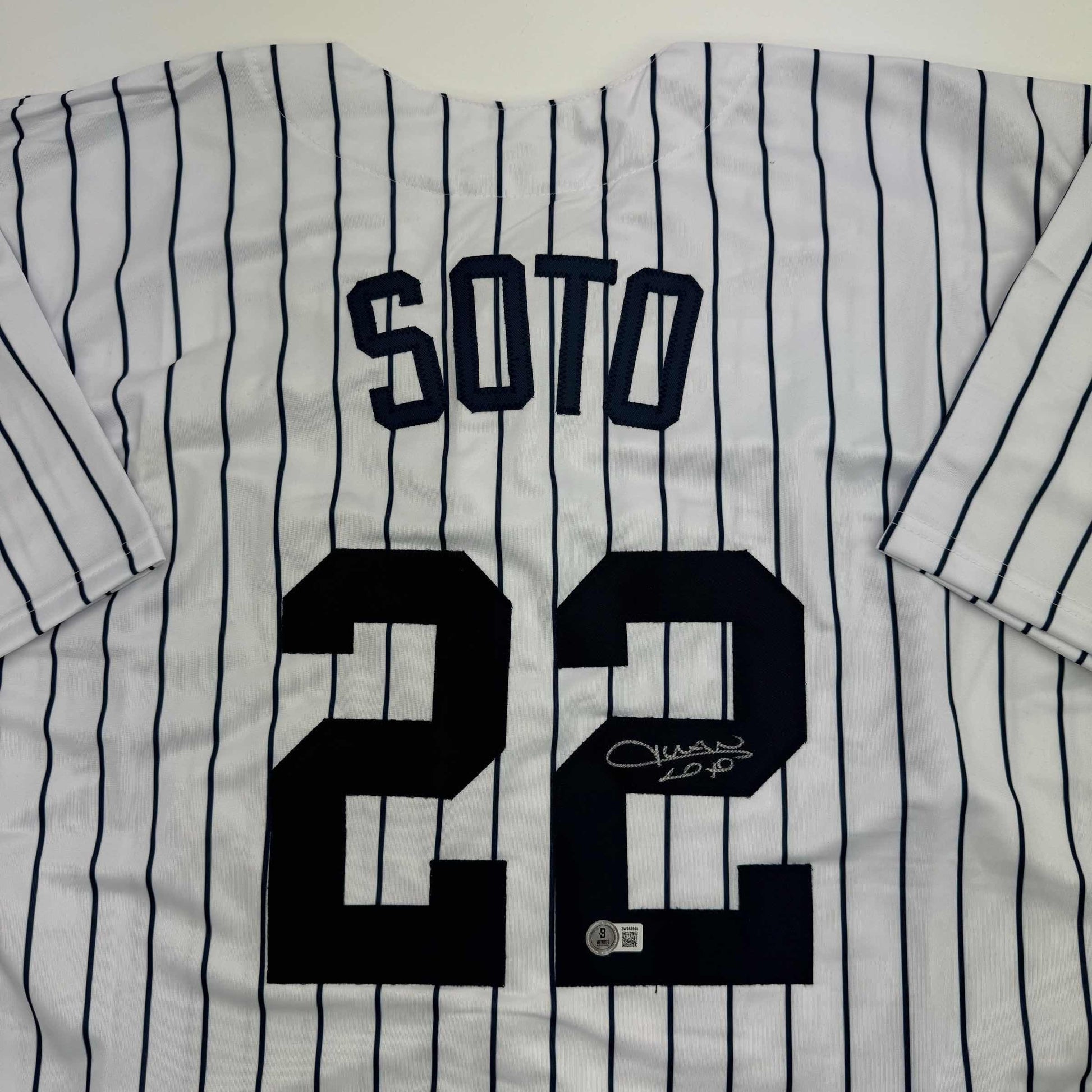 Autographed/Signed Juan Soto New York Pinstripe Baseball Jersey Beckett BAS COA