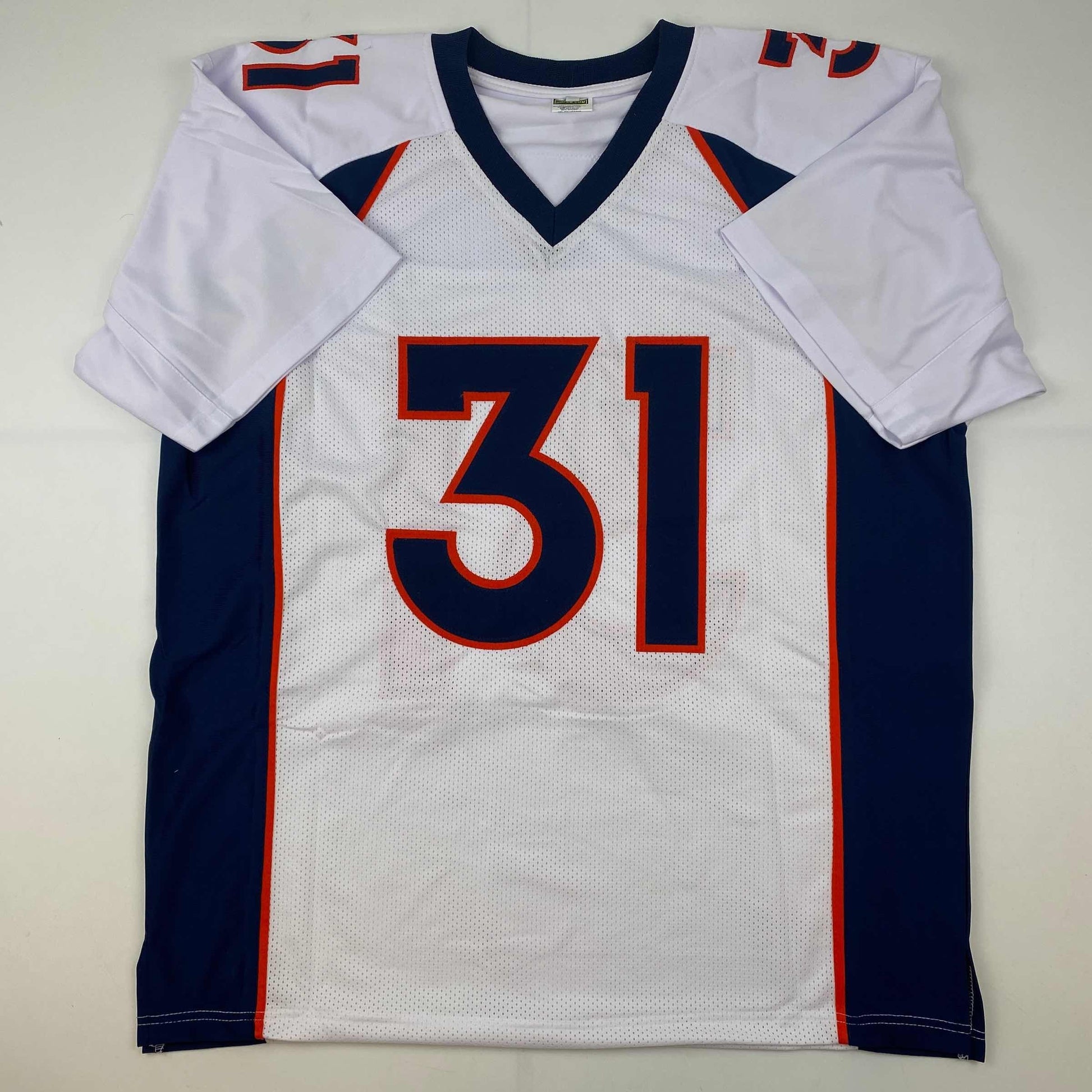 Jersey has no brand names or logos. This is a custom jersey and was not manufactured by or in any manner associated with any professional sports league or manufacturer. This custom jersey carries no professional sports league designation. The item is intended to be an autographed collectible. The custom jersey displays the name and number of the player. This item in no way is affiliated with or connected to any professional sports organization. Size is XL.