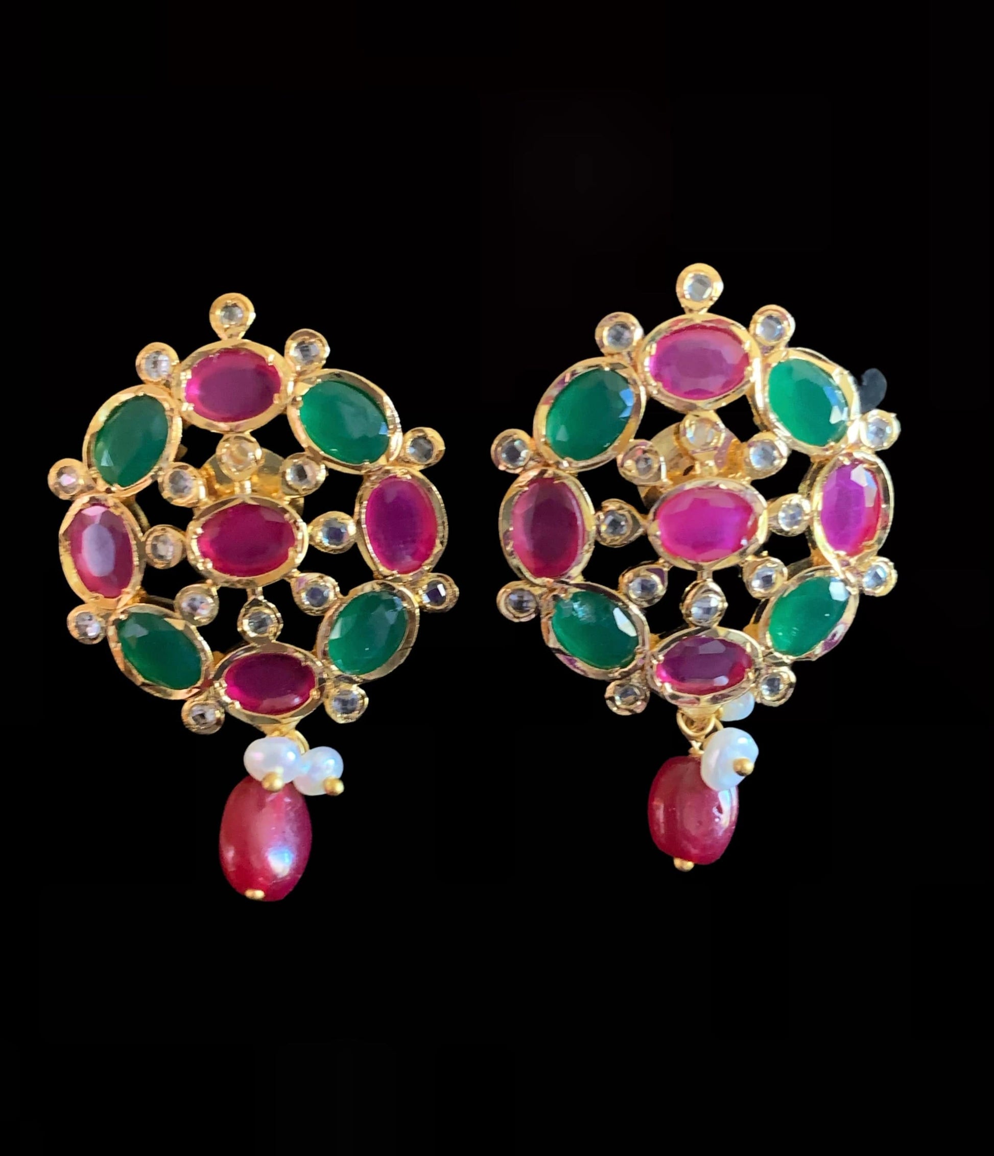 • Dual-tone design with deep ruby red and emerald green accents, set in CZ Polki stones