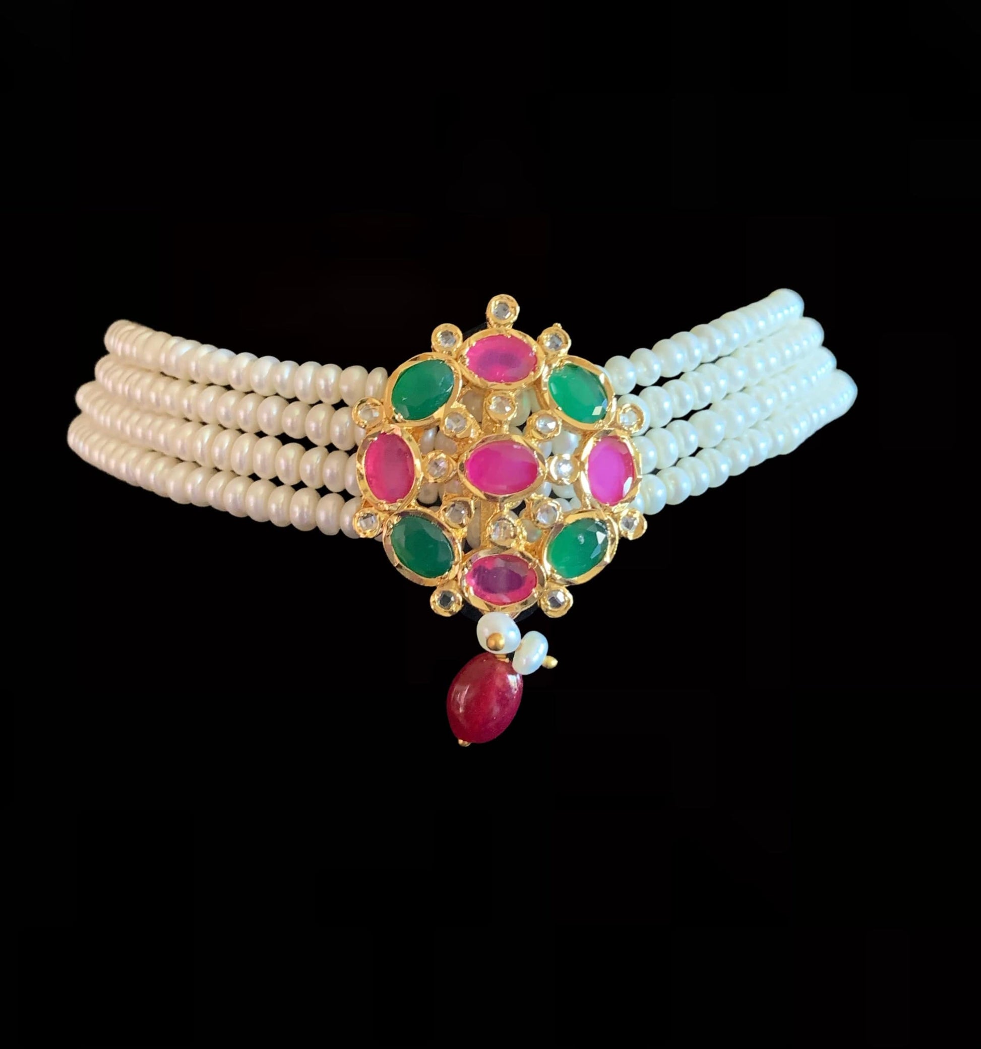C13 Alma fresh water pearl choker set ( RUBY EMERALD ) ( READY TO SHIP )