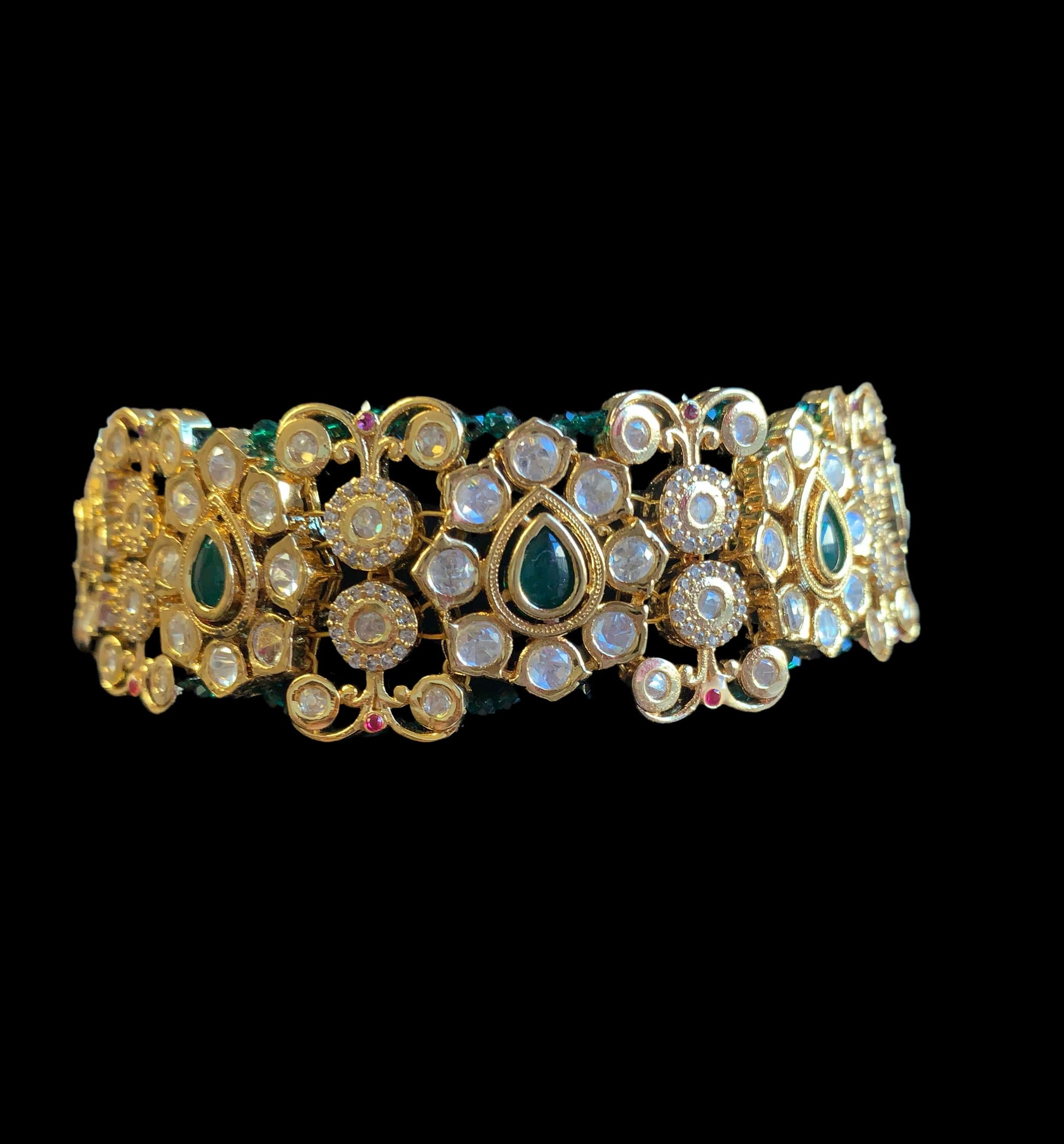 made using onyx beads with high quality Cz polki and 22ct gold plating