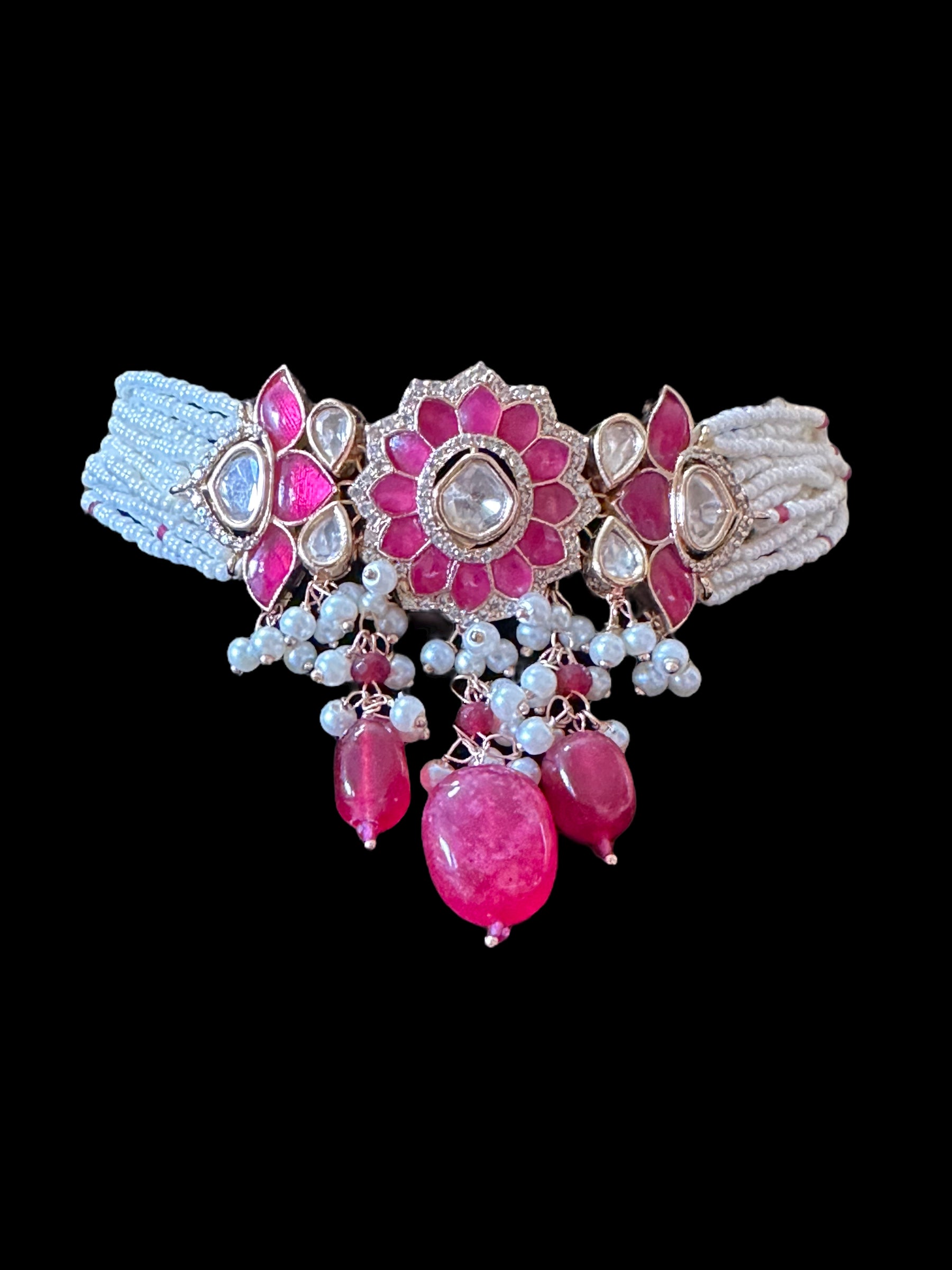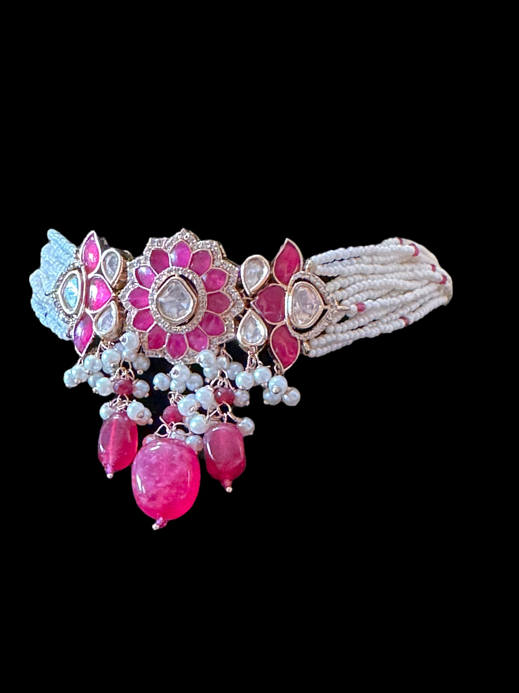 C285 gold plated choker with pearls and green beads ( READY TO SHIP )