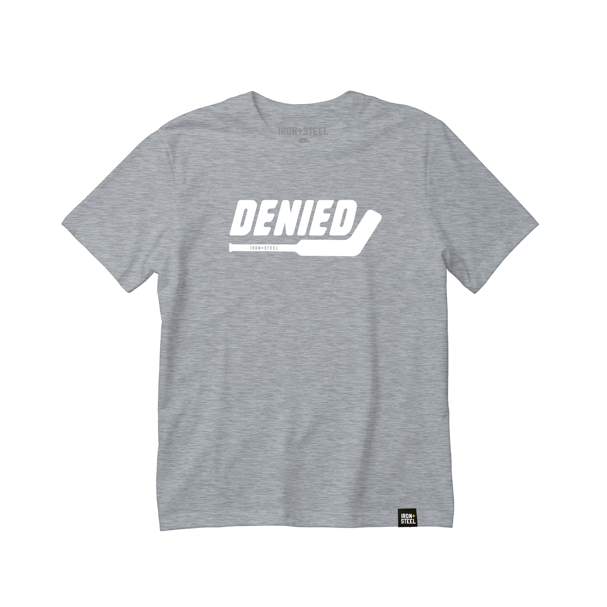 Celebrate the art of the save with the Denied Goalie Stick Hockey T-Shirt.