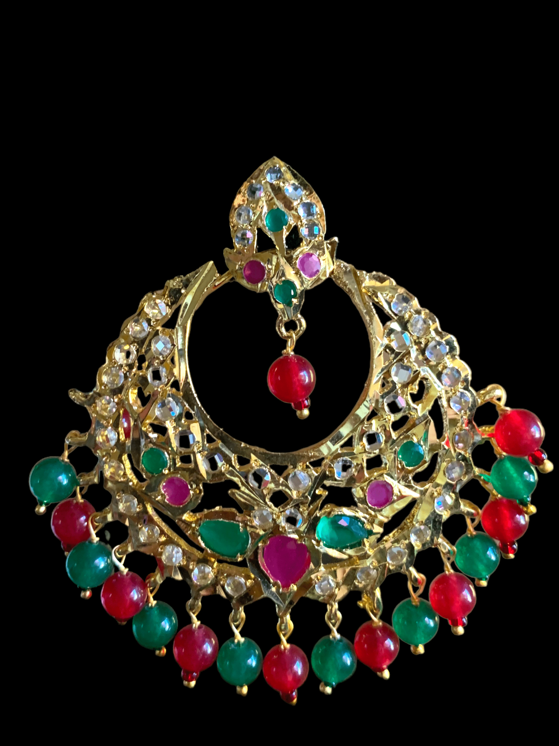 DER279 Noor chandbali in red green (READY TO SHIP )