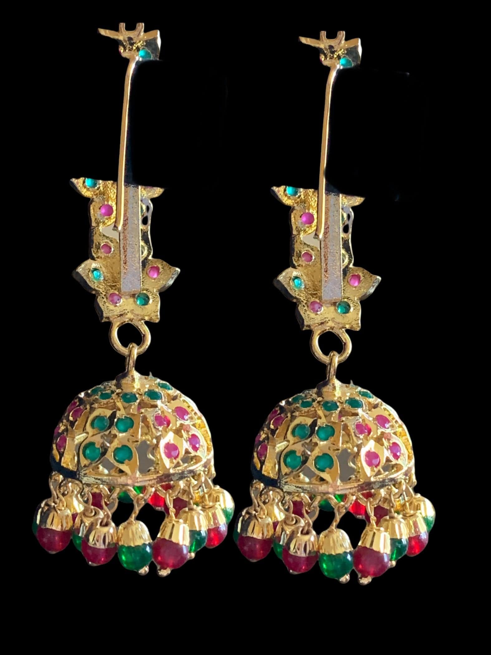 DER366 Ankita jhumka - red green ( READY TO SHIP )