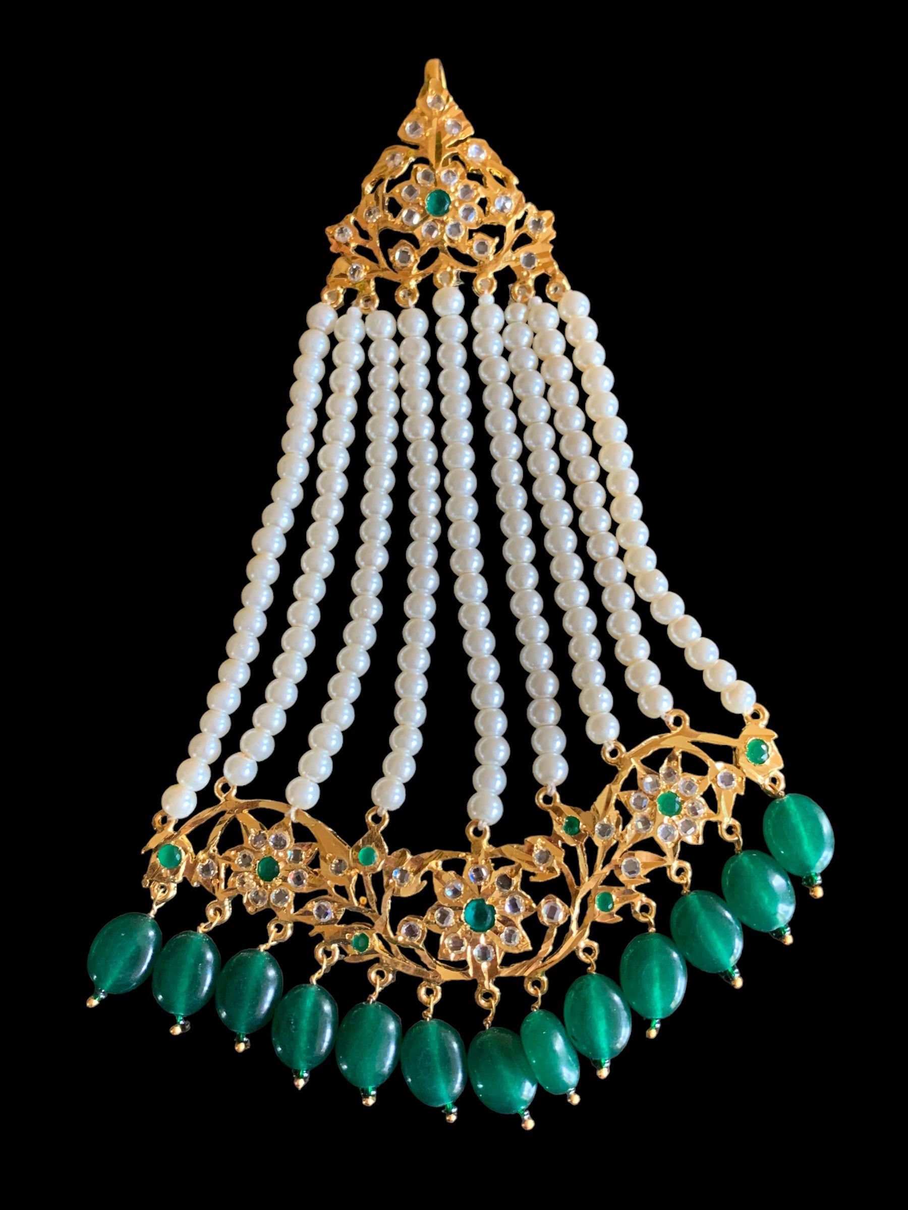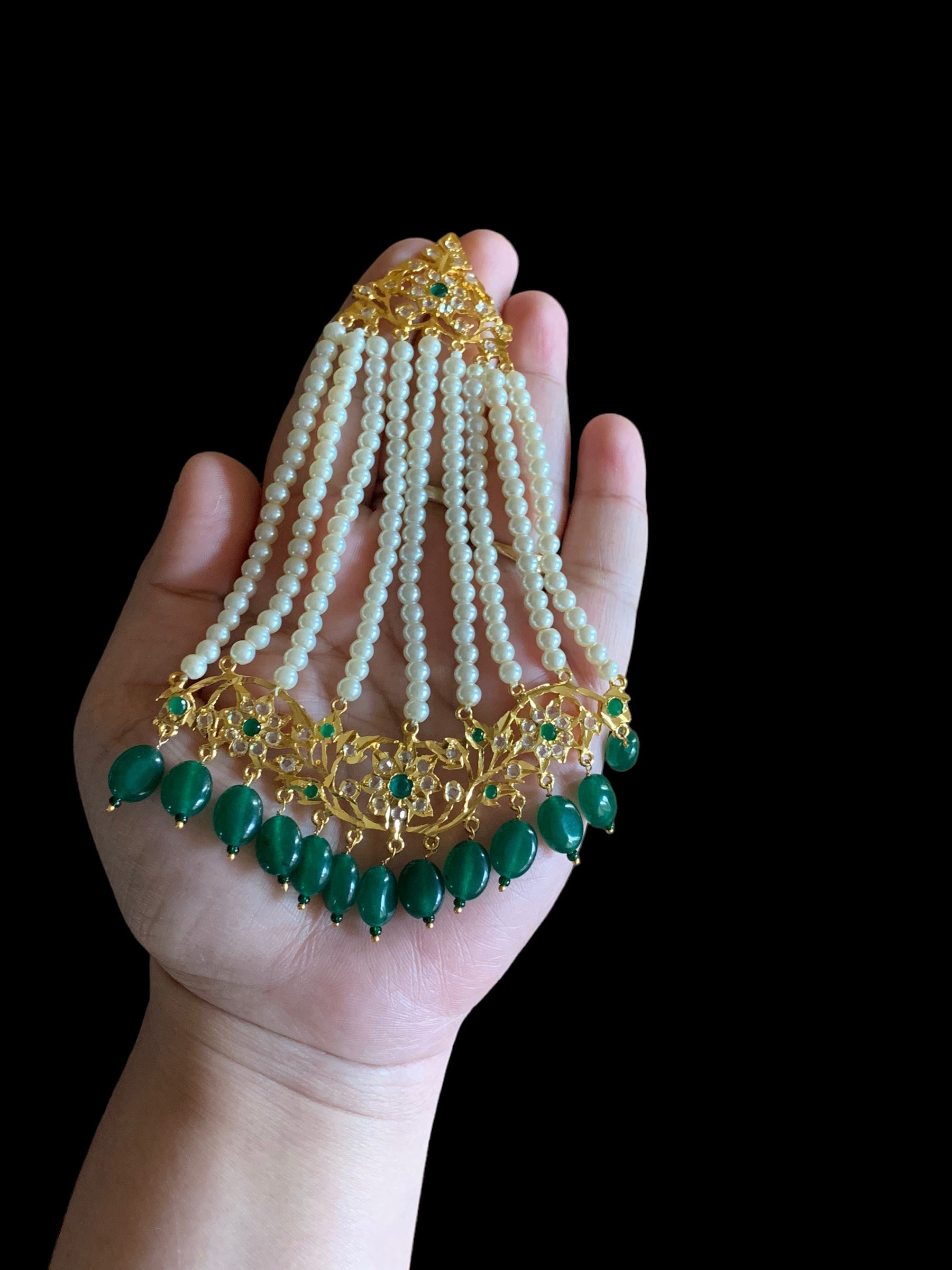 DJHR58 Abira Jhoomar in green beads (SHIPS IN 3 WEEKS )