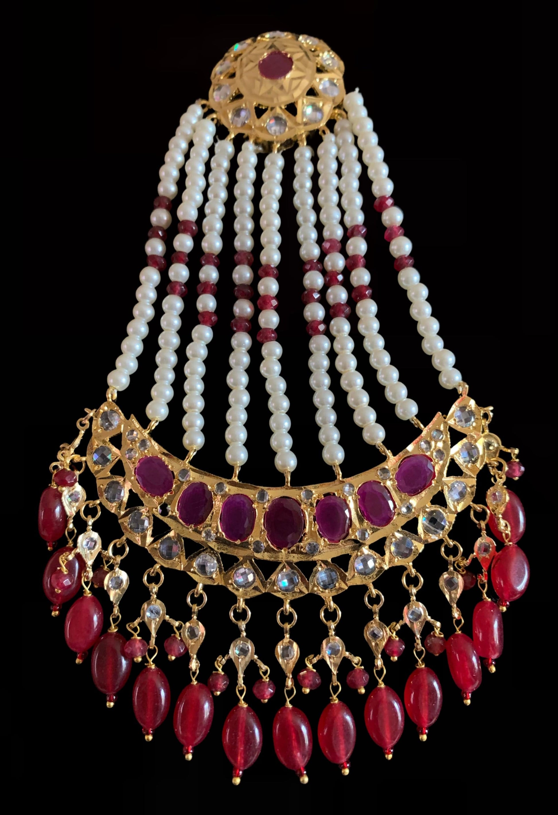 DJHR72 Ruby jhoomar / passa in shell pearls (READY TO SHIP )