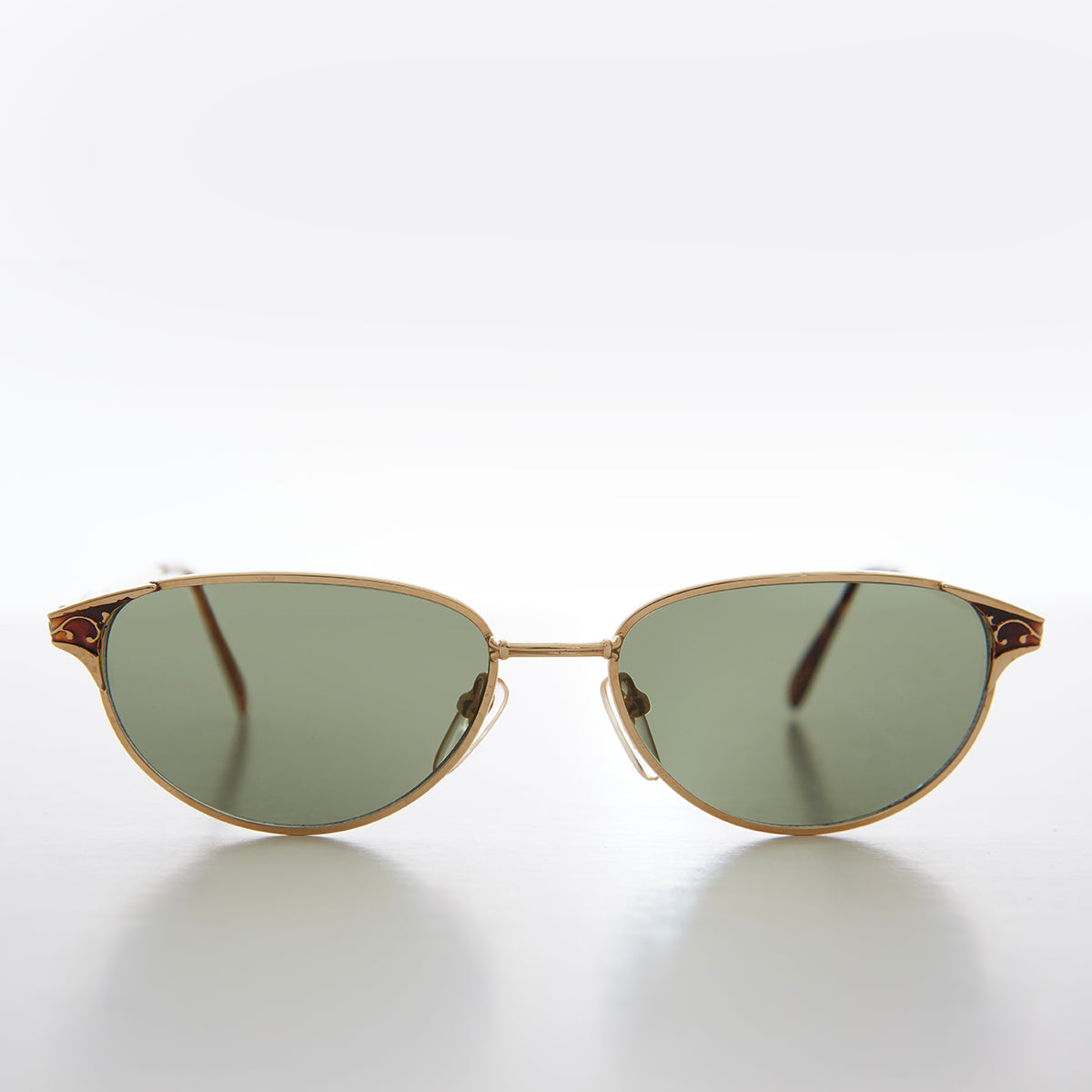 These stunning sunglasses feature an elegant rim and temple details with brown hand painted accents. These sunglasses are optical quality so go ahead an put your prescription in them. New old stock. Never worn. Great condition. UV protection.