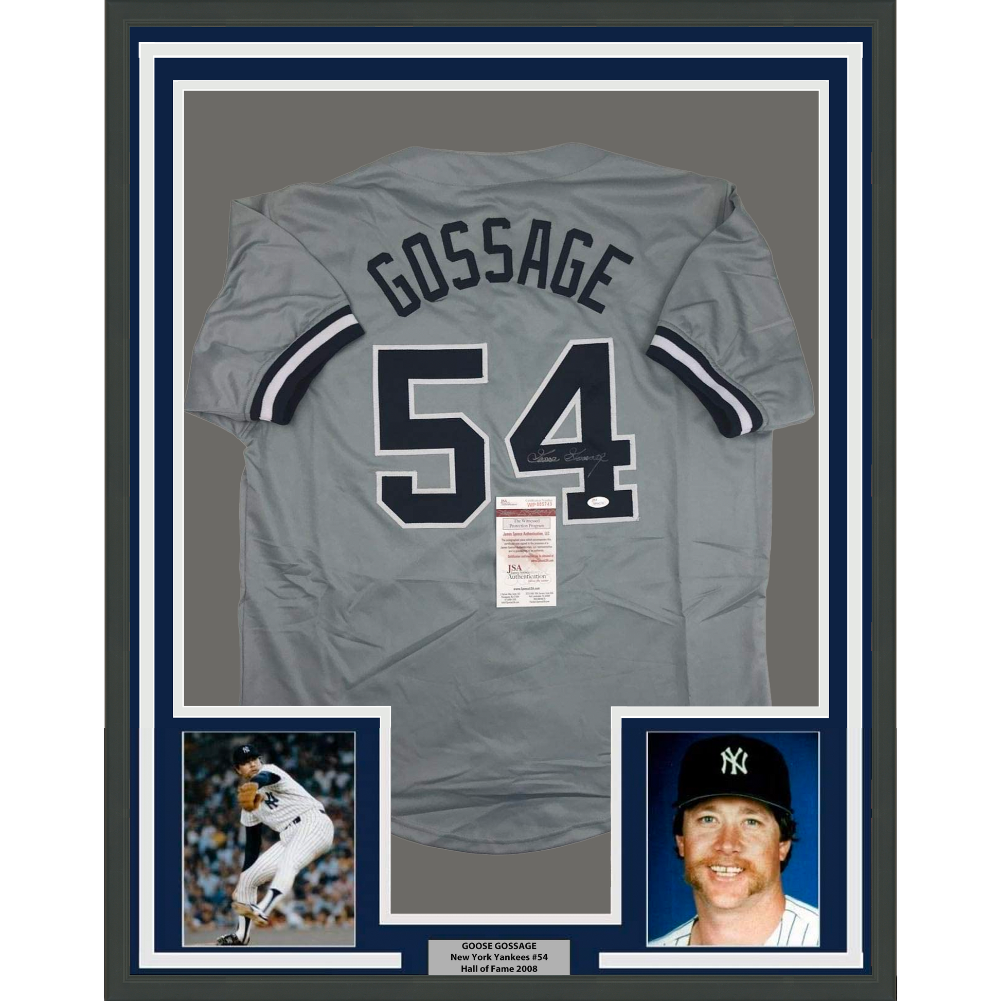 Framed Autographed/Signed Goose Gossage 35x39 New York Grey Baseball Jersey JSA COA