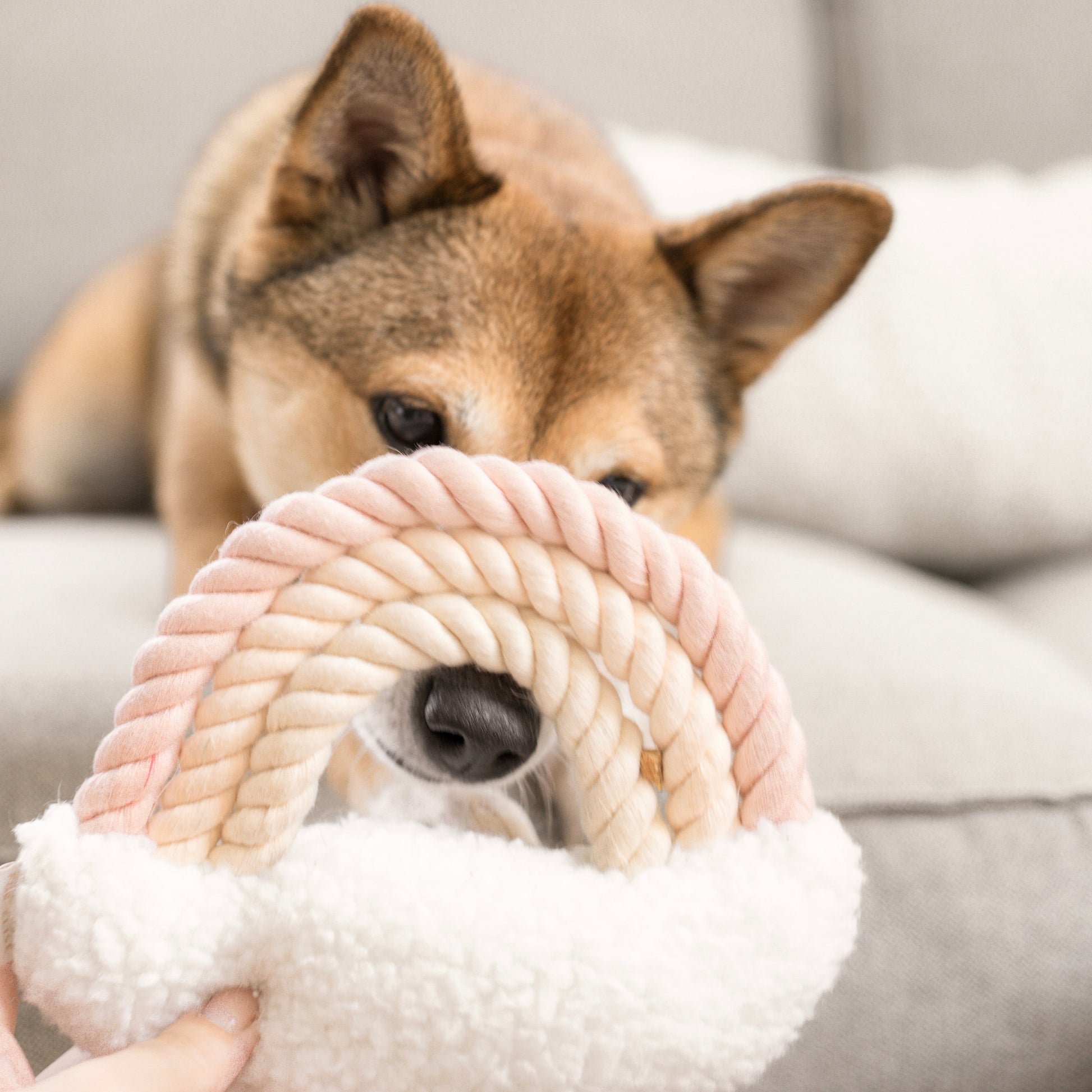 Meet the Iris Plushie—a dreamy blend of play and comfort for your furry friend. Named after the Latin word for "rainbow," this enchanting toy features pastel cotton ropes perfect for tug-of-war and teething pets who love to chew. The soft sherpa cloud is packed with crinkle paper and squeaky balls, keeping playtime exciting for hours. Sized just right for most pets, it’s the perfect companion to keep their head in the clouds—while you tackle your to-do list.