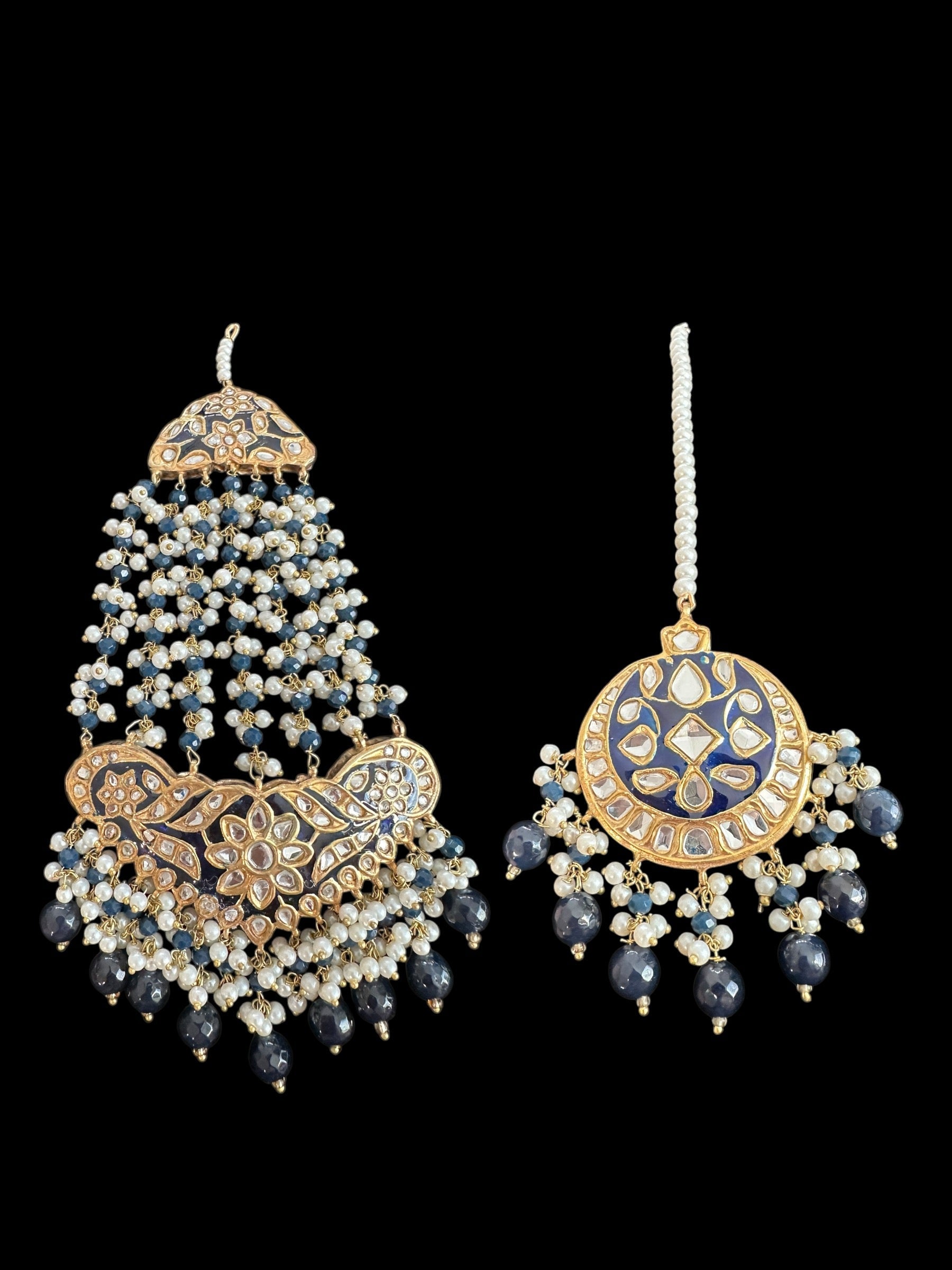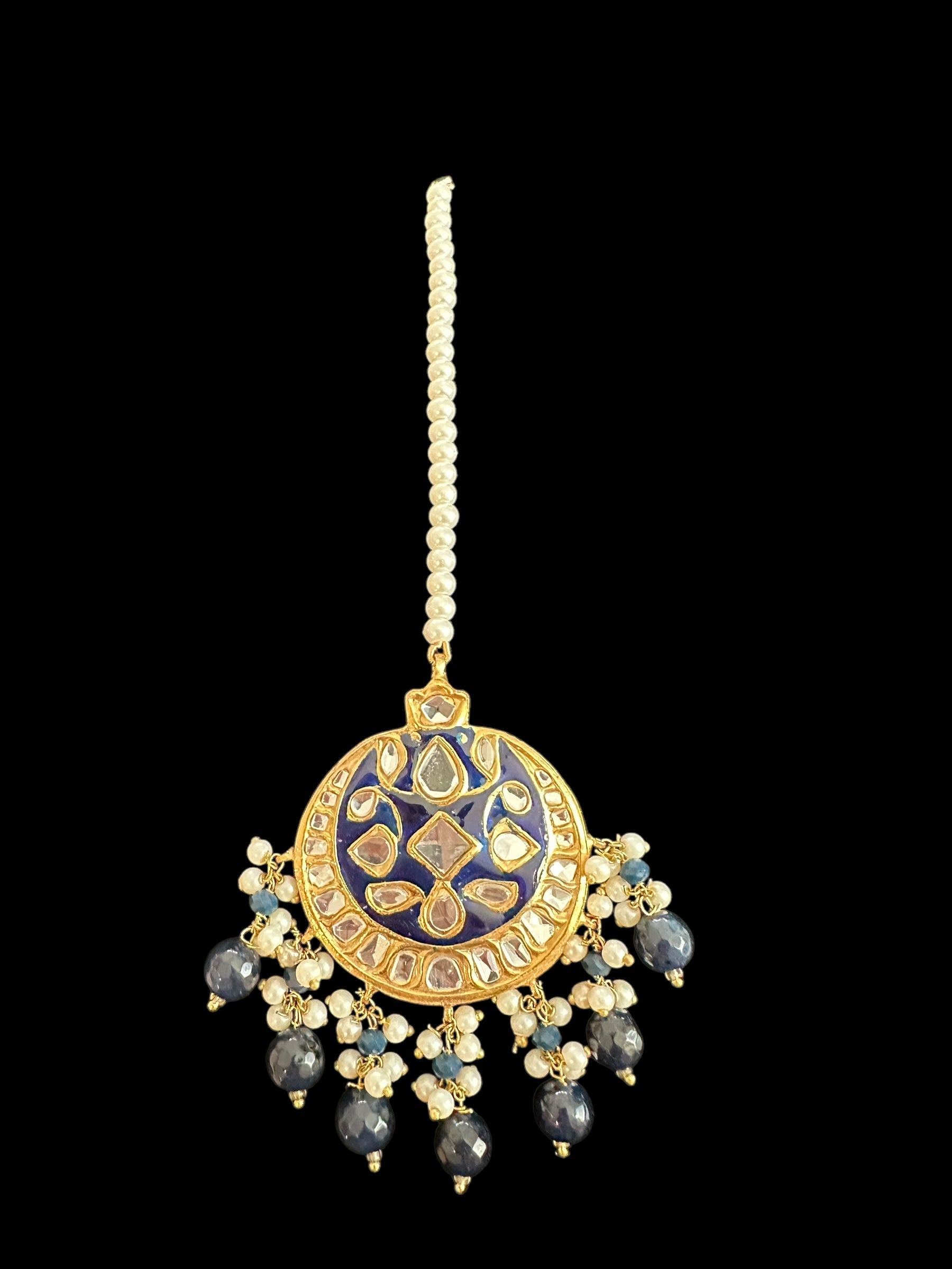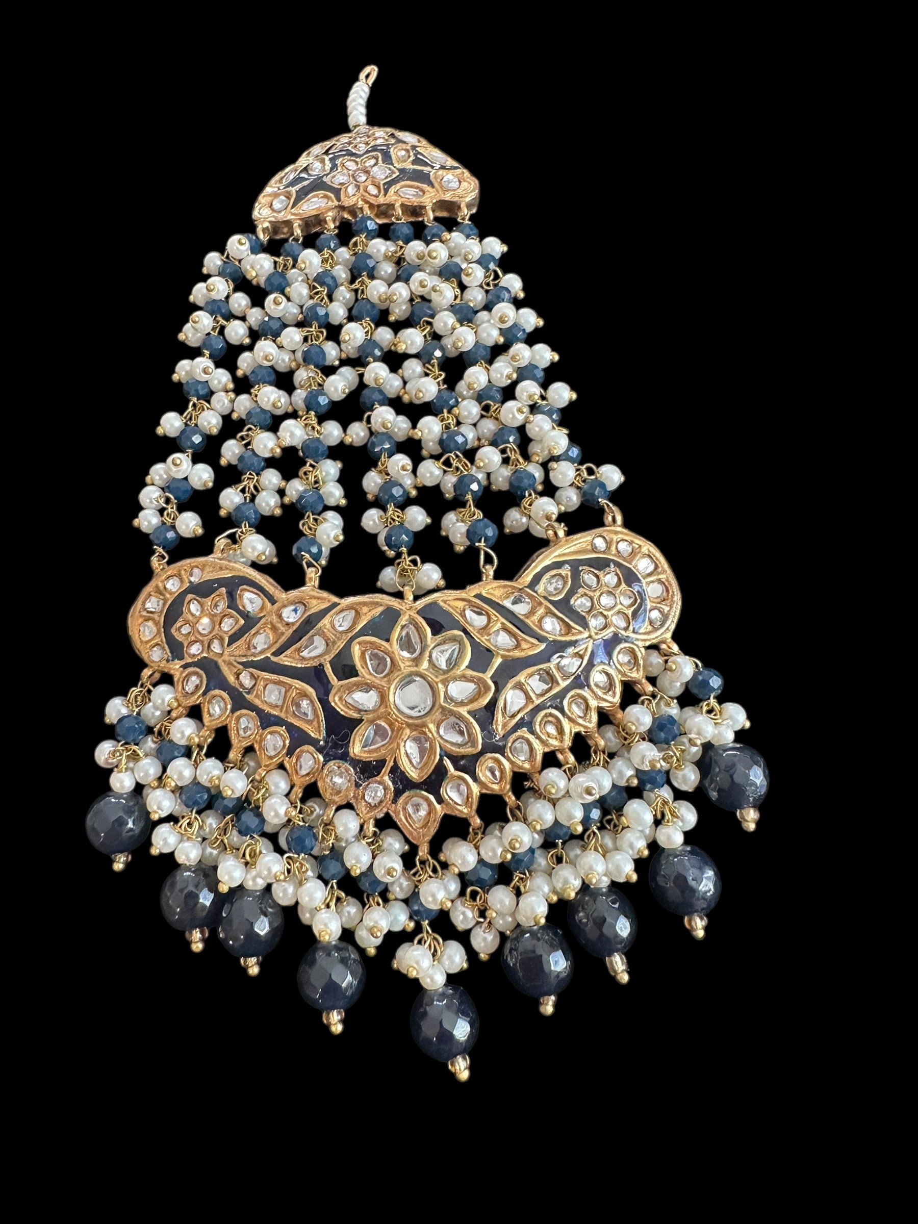 JTK38 kundan jhoomar tika in blue meenakari ( READY TO SHIP )
