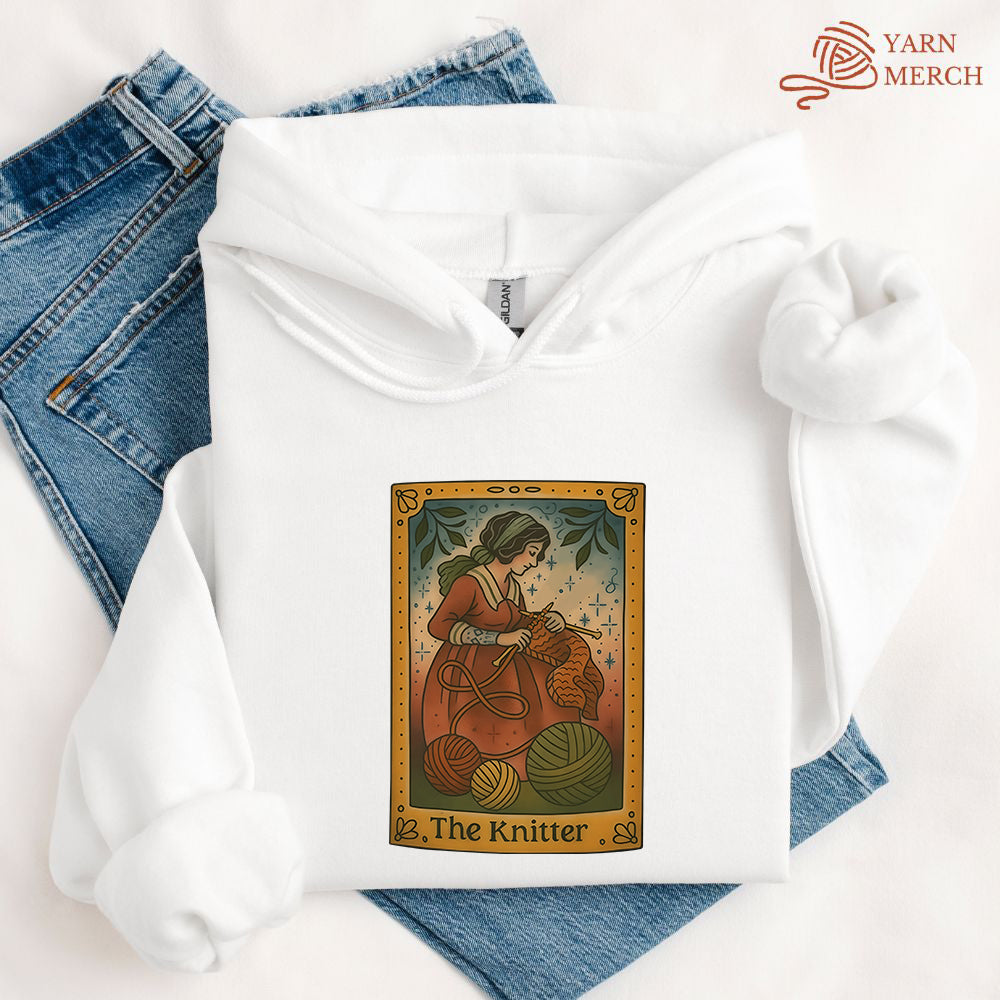 The Knitter Hoodie – Mystical Crafting Meets Vintage Tarot Vibes 🔮🧶
