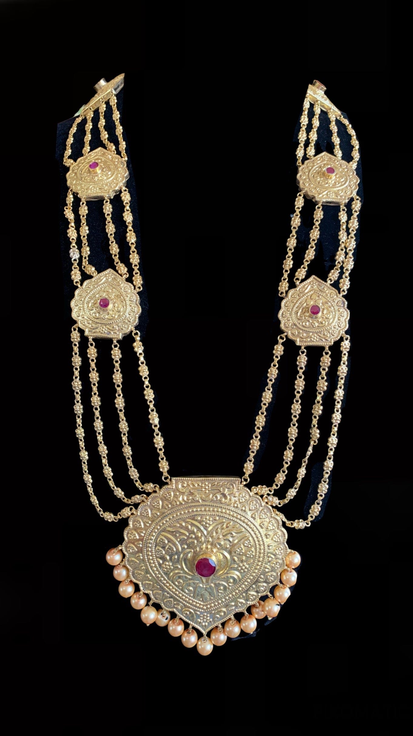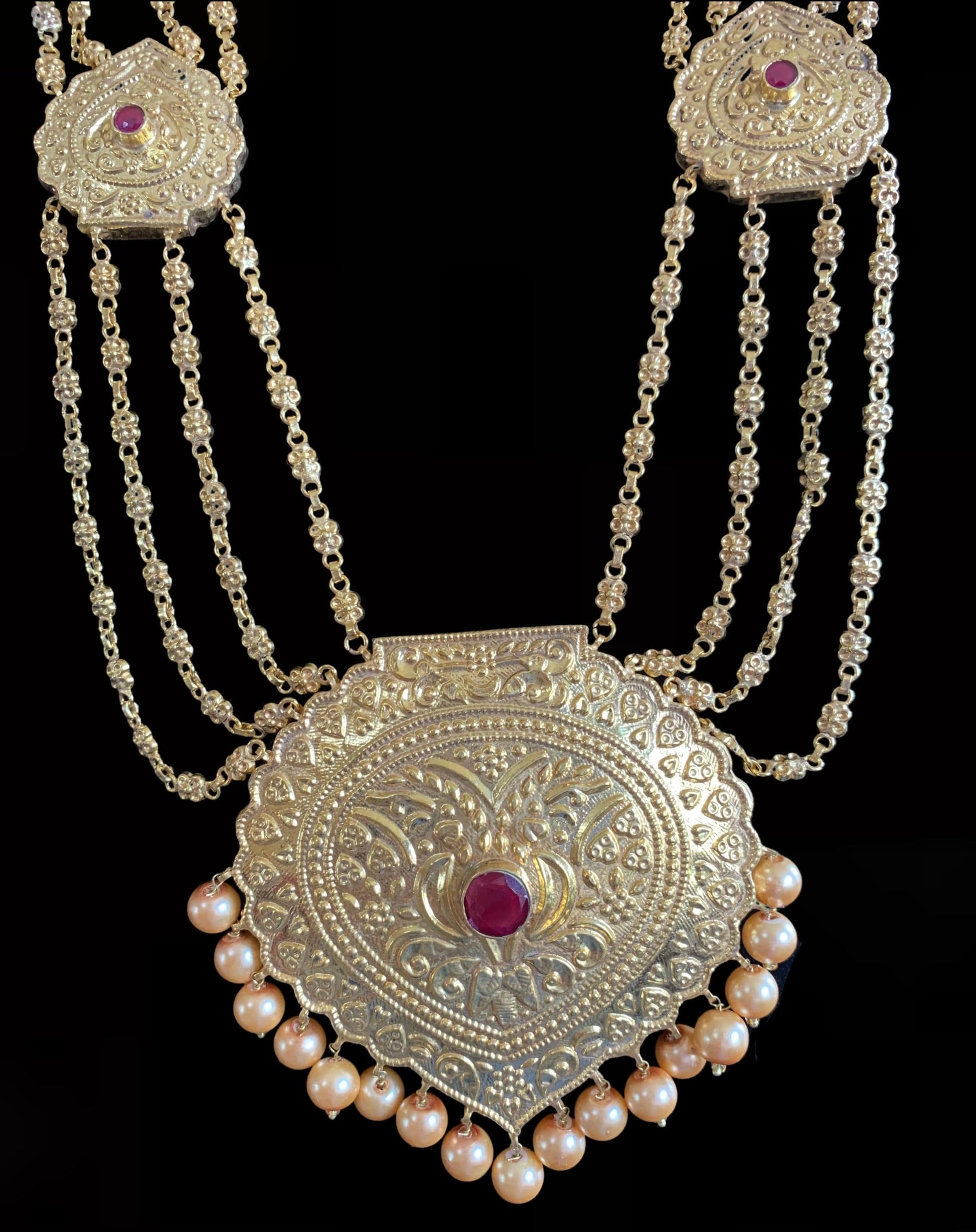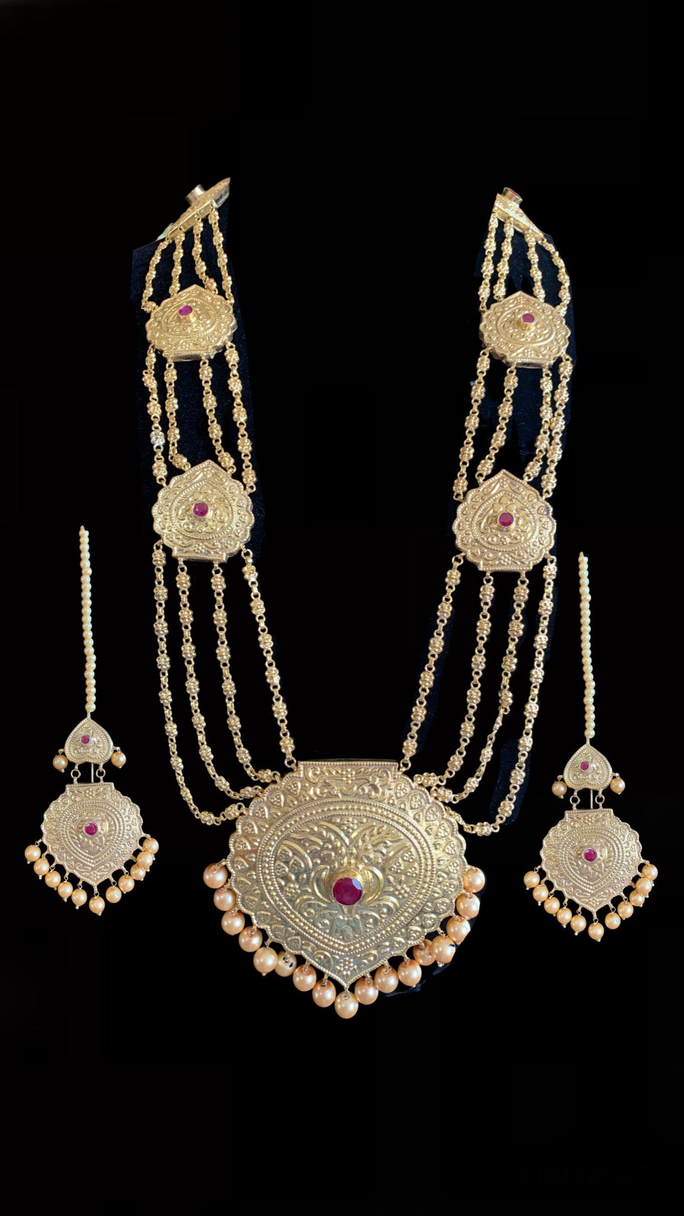 LN42 Chanda gold plated Rani haar with earrings tika ( READY TO SHIP)
