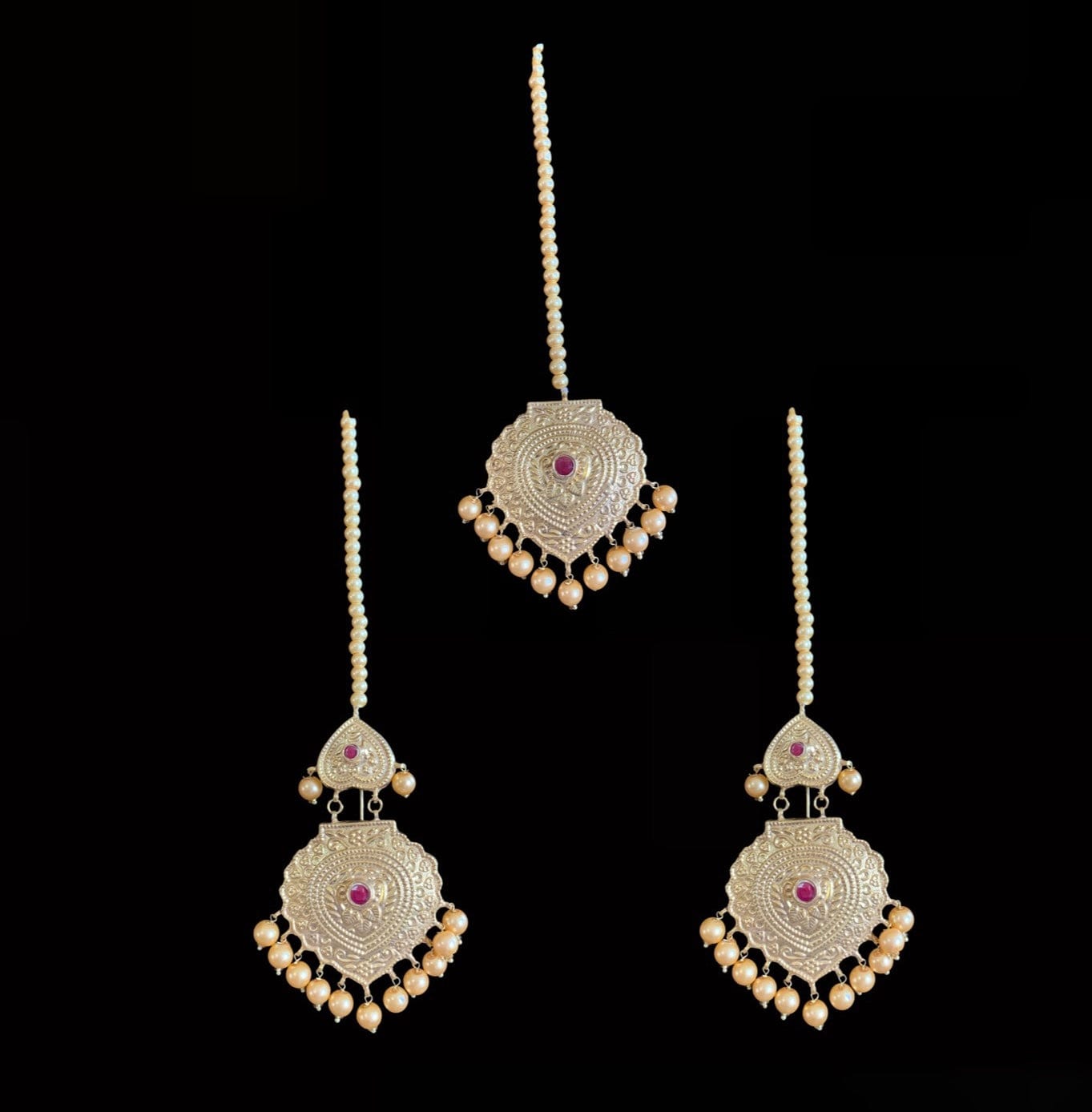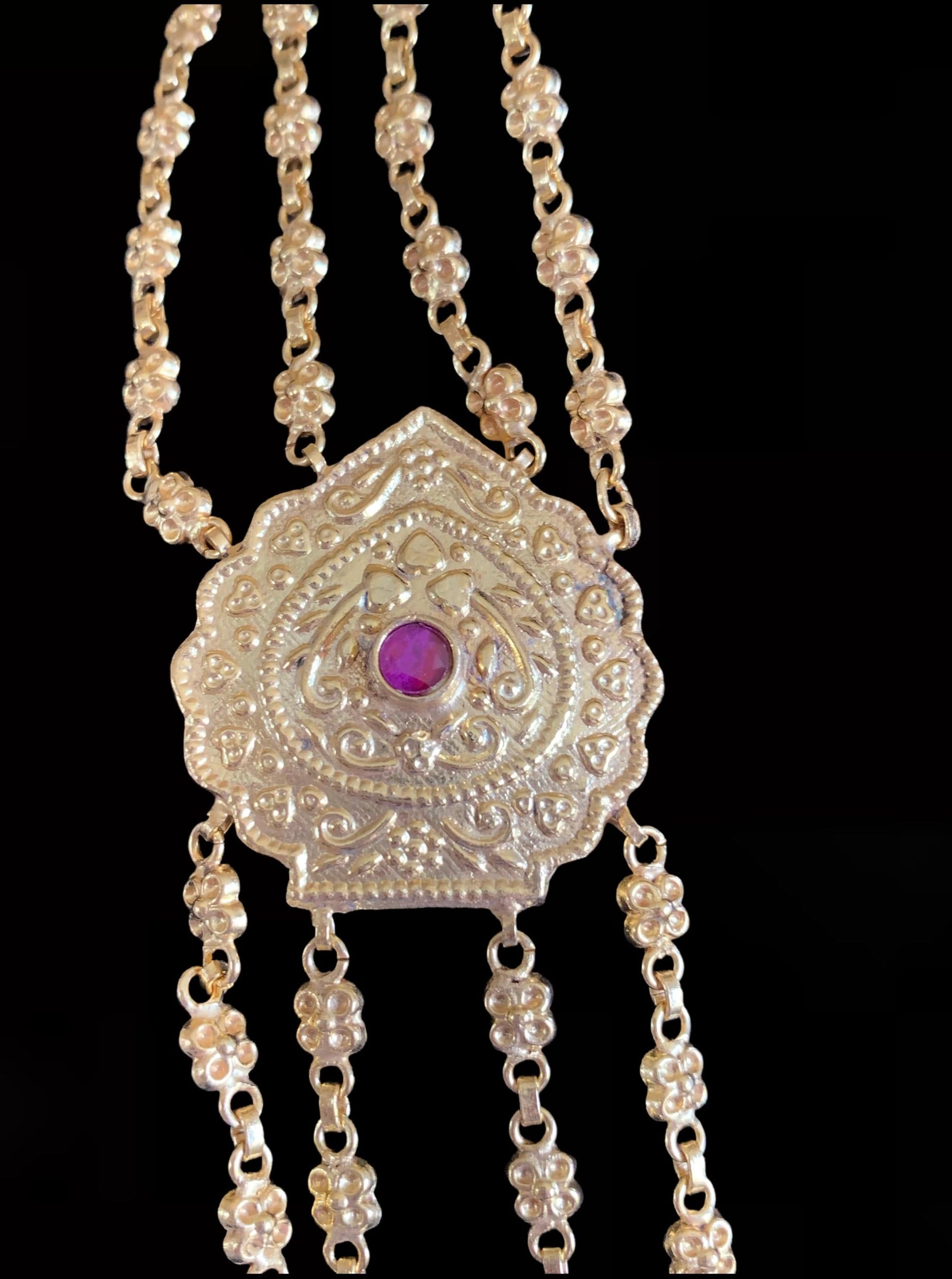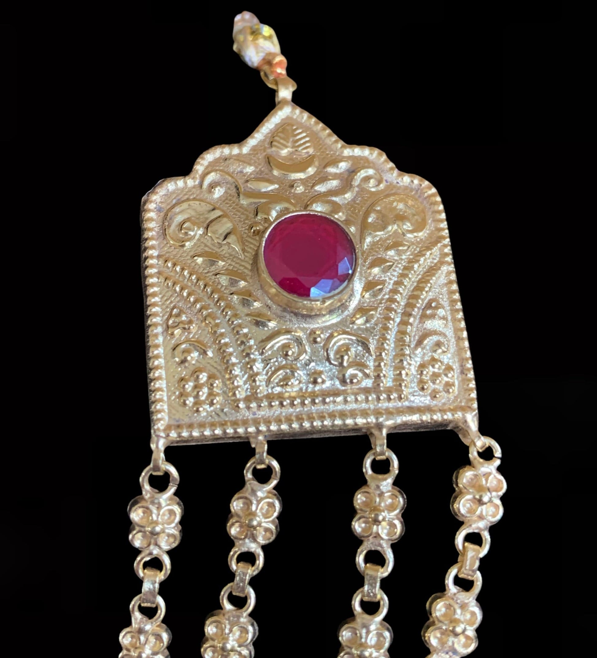 LN42 Chanda gold plated Rani haar with earrings tika ( READY TO SHIP)