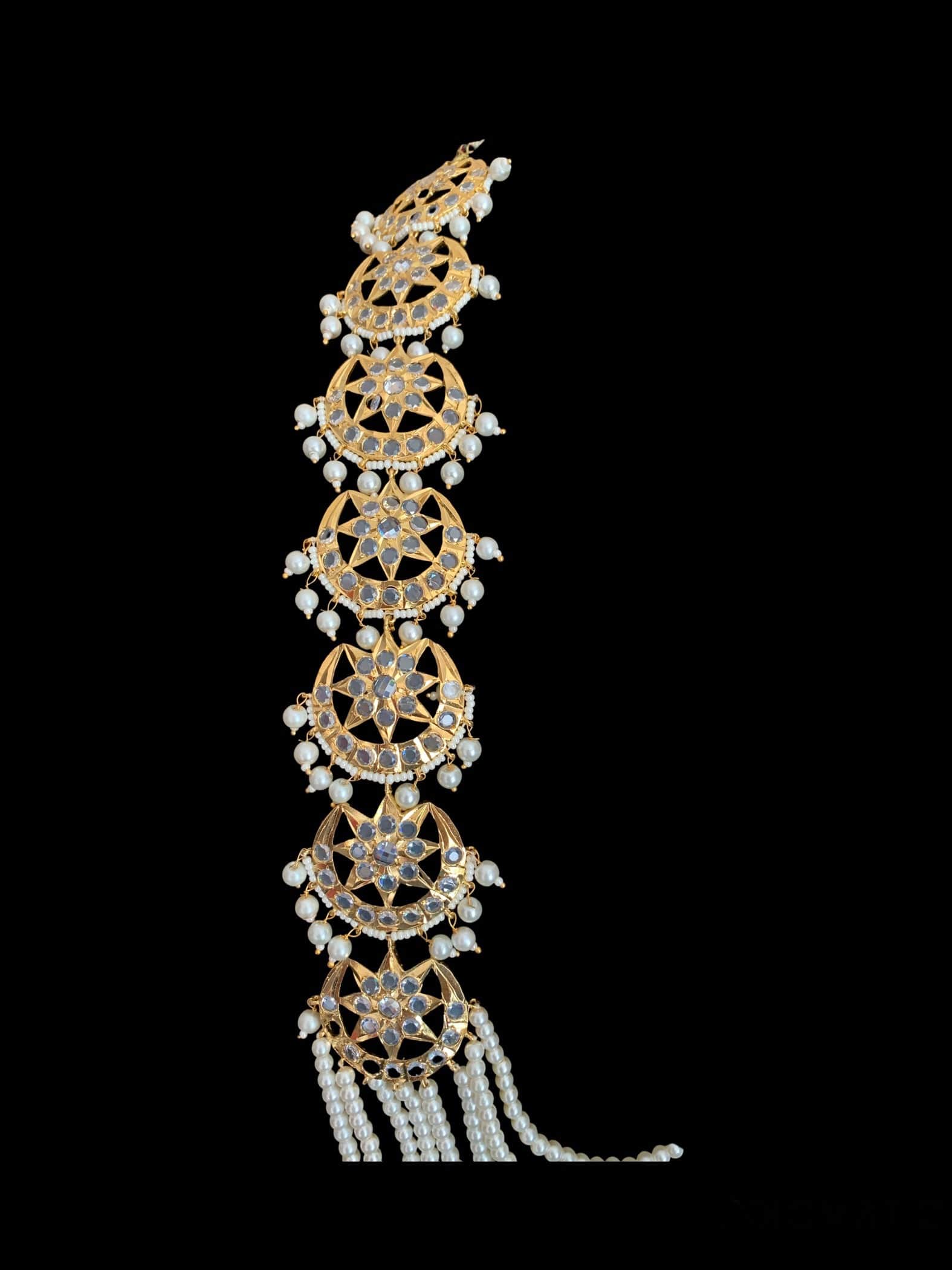 made using , shell pearls , cz polki stones and 22ct gold plating