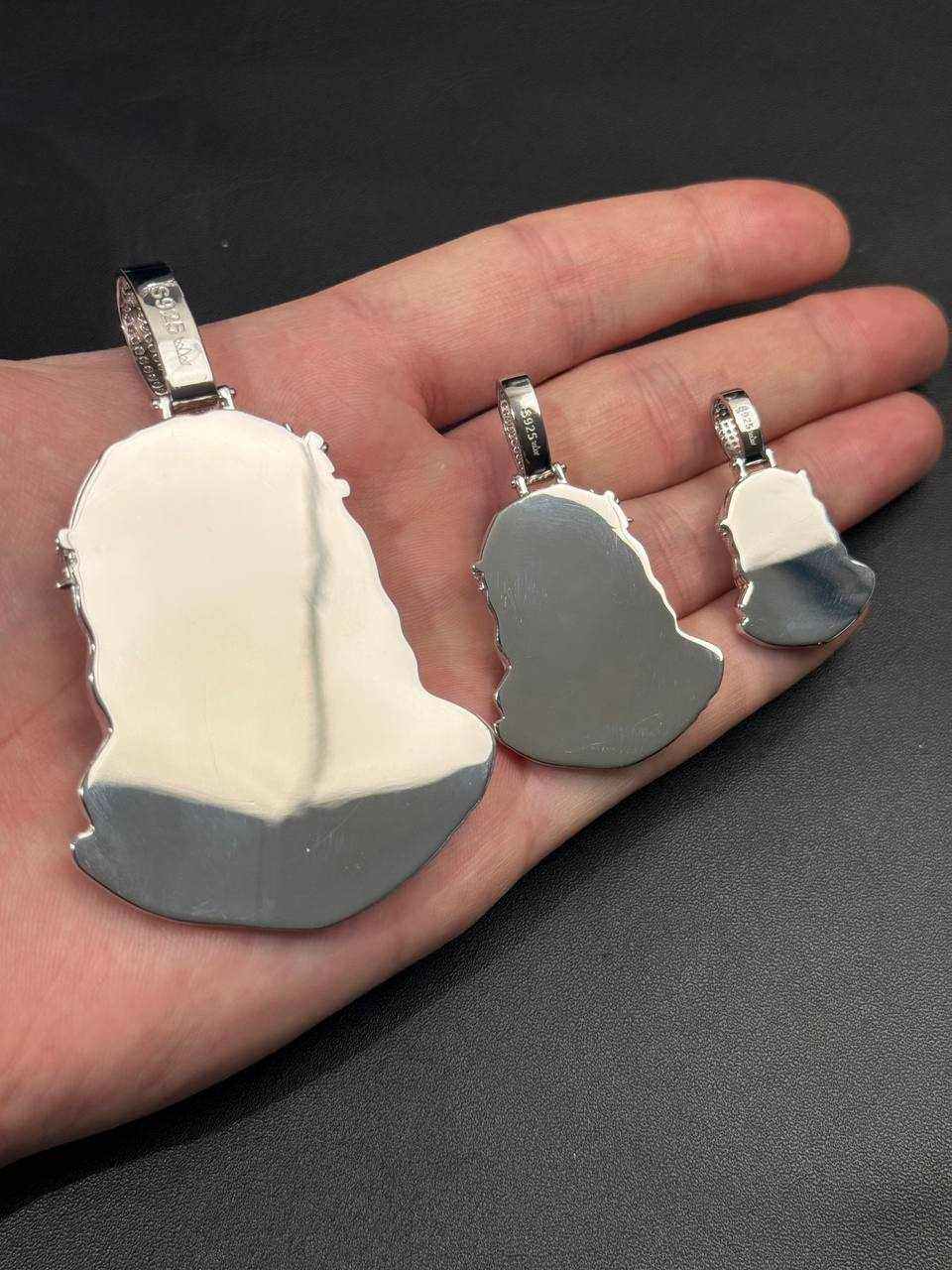 Moissanite Jesus Head Piece Pendant - Solid 925 Sterling Silver
