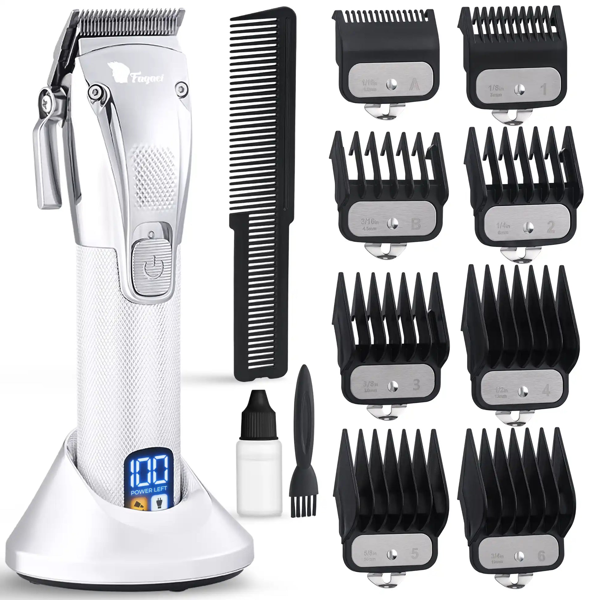 - 🔋 ALL DAY BATTERY / 5 HOURS - Fagaci hair clipper makes your life easier. With 5 hours of battery life, you will never run out of battery during a haircut. The all-day battery life in just 3 hours of charging. Plus, the hair clipper has a charging stand for easier charging and a corded/cordless function.