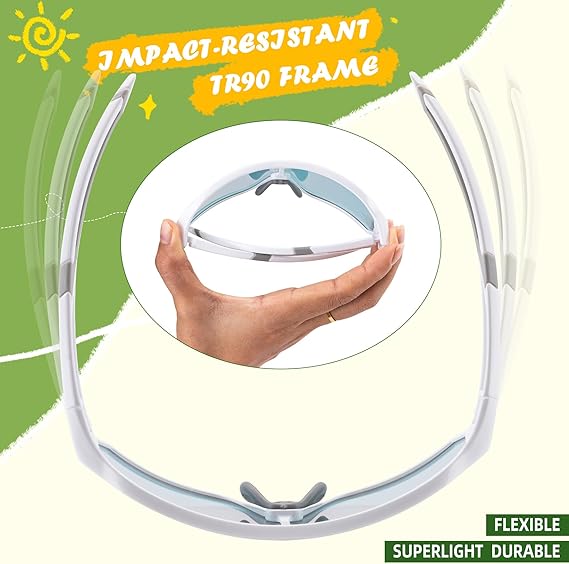 👓[NO BURDEN ON YOUR NOSE]: Our kids sunglasses boys is 27g, which is lightweight for kids to wear, without burden on their noses. Curved design brings better wind and dust resistance, low air resistance, suitable for high-speed riding.