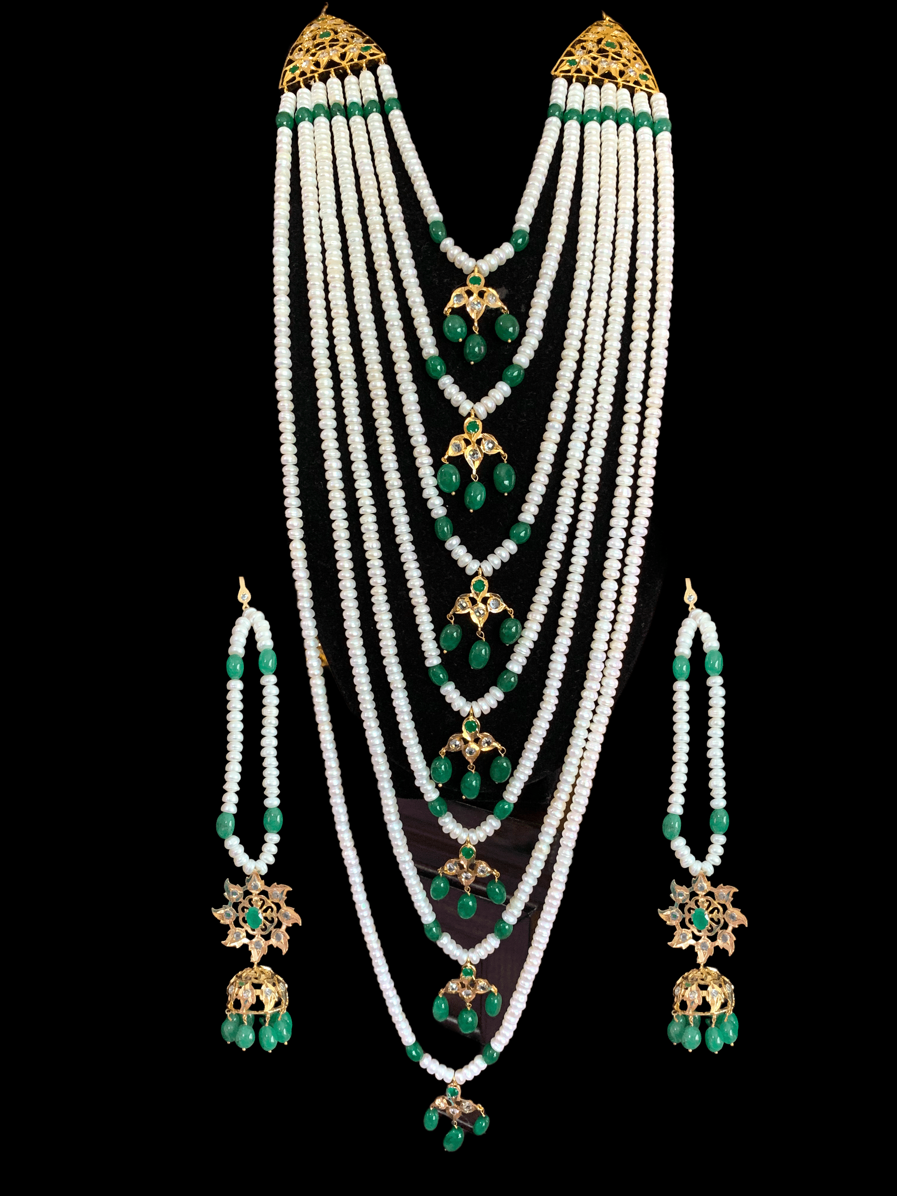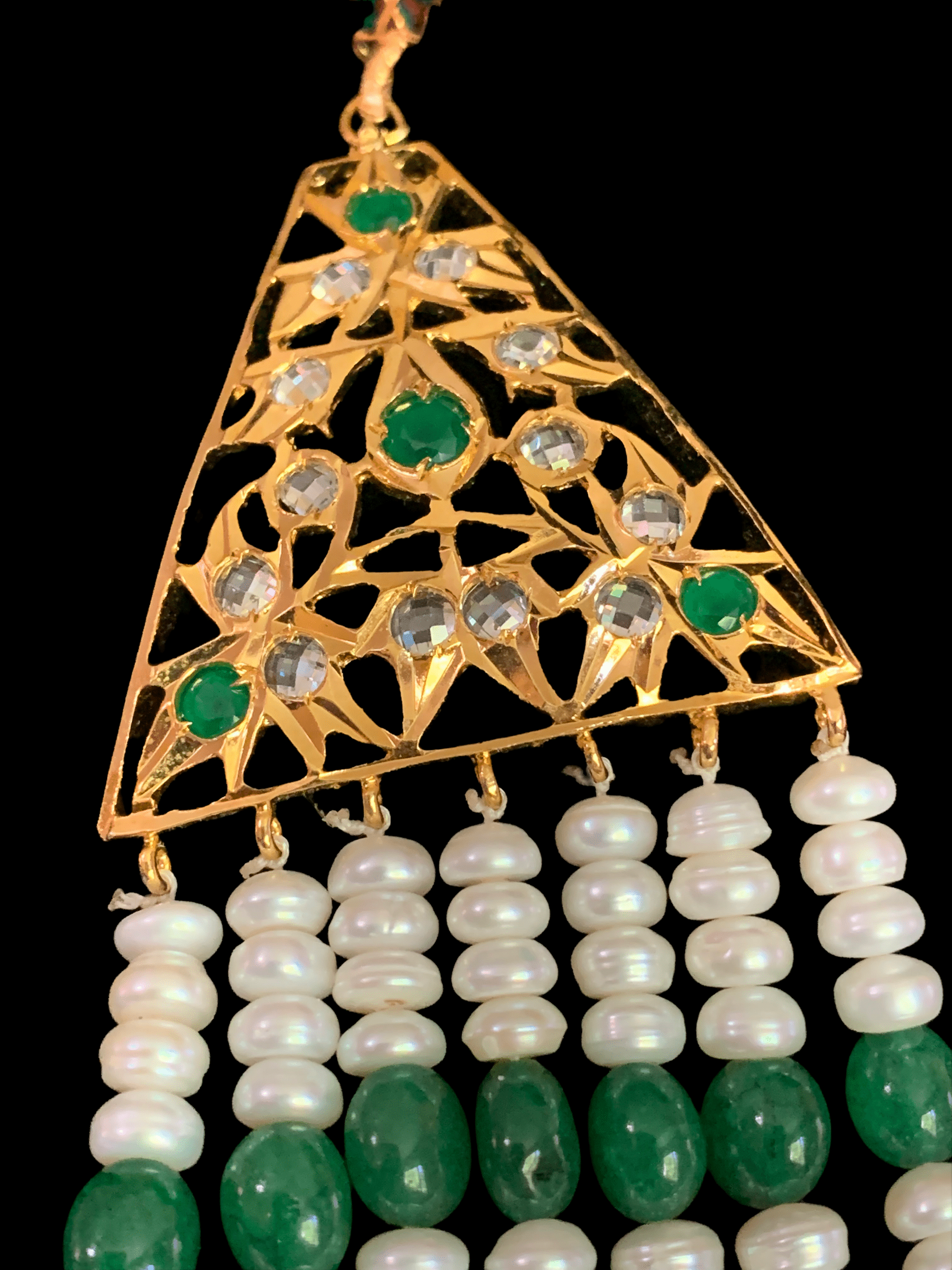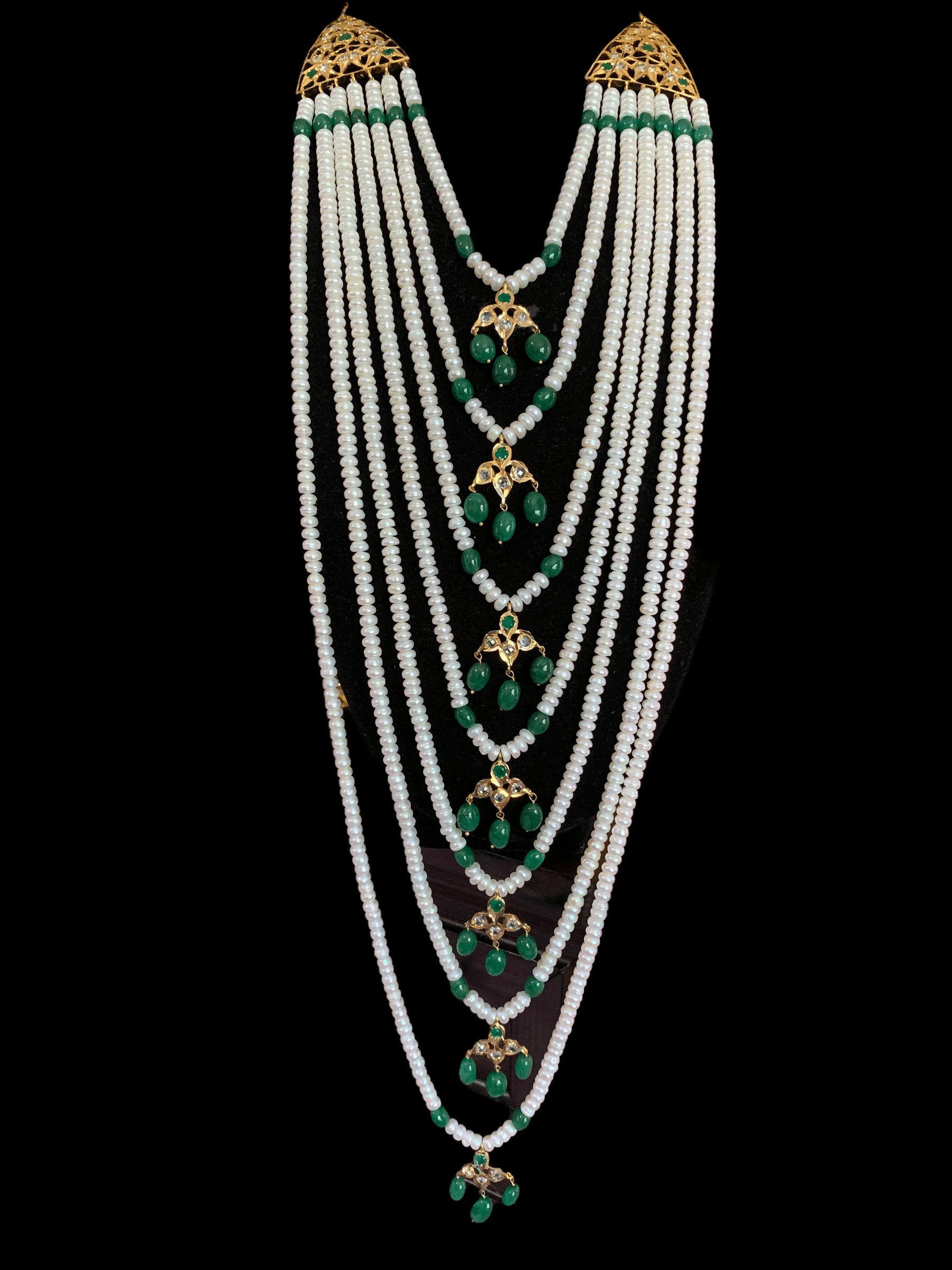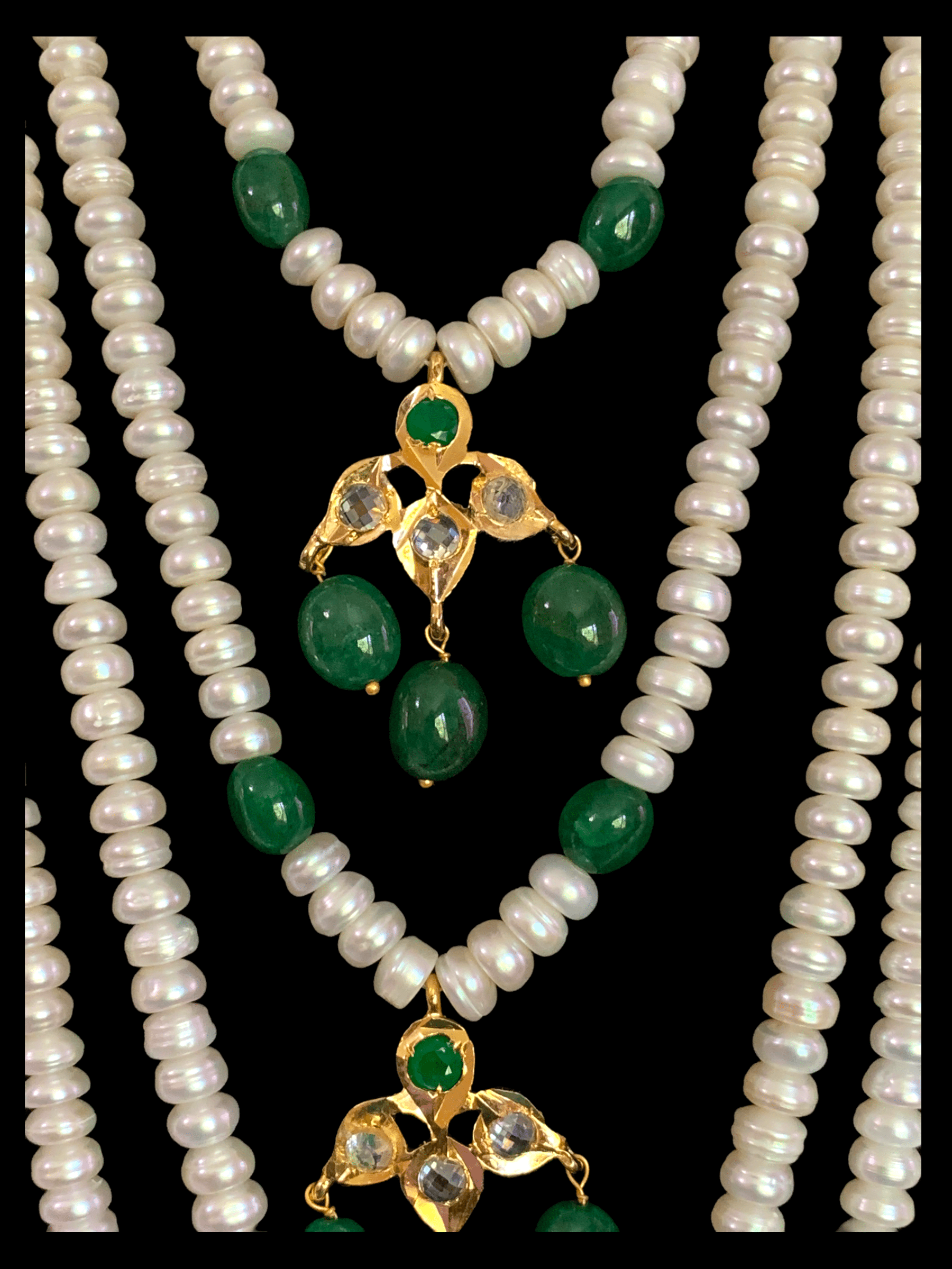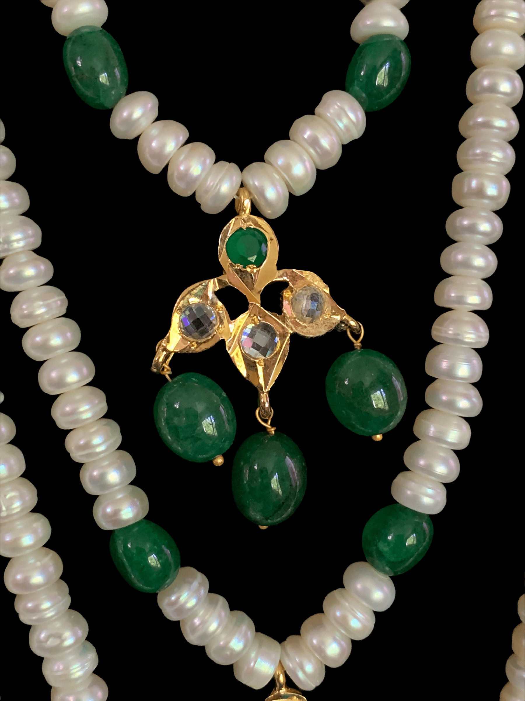 SAT36 Hyderabadi satlada in Fresh water pearls and emeralds (SHIPS IN 4 WEEKS )