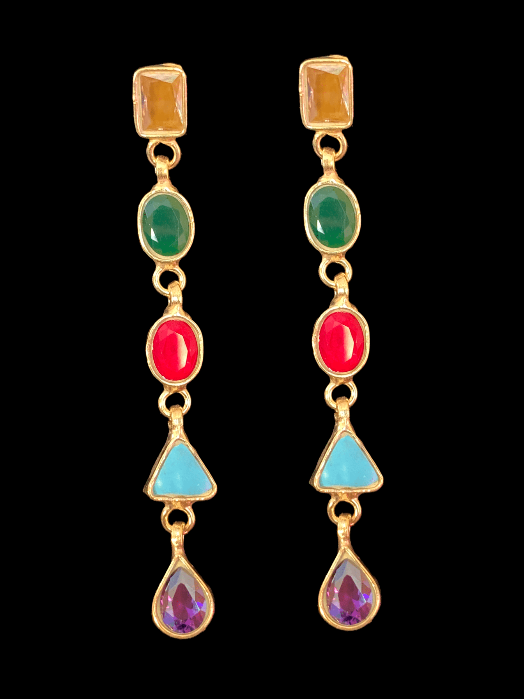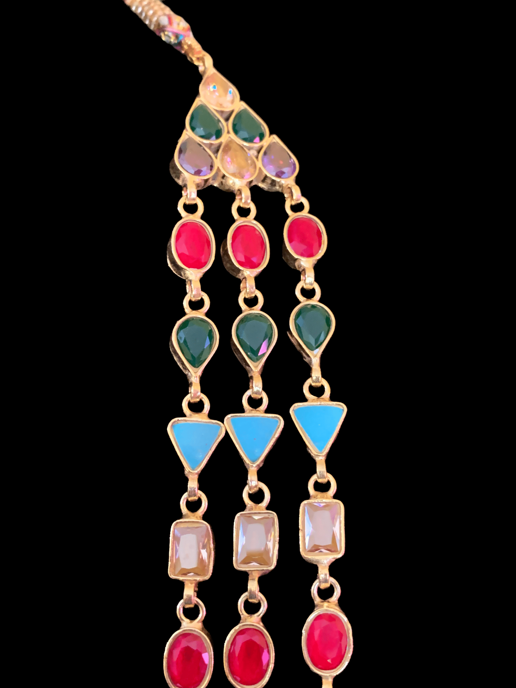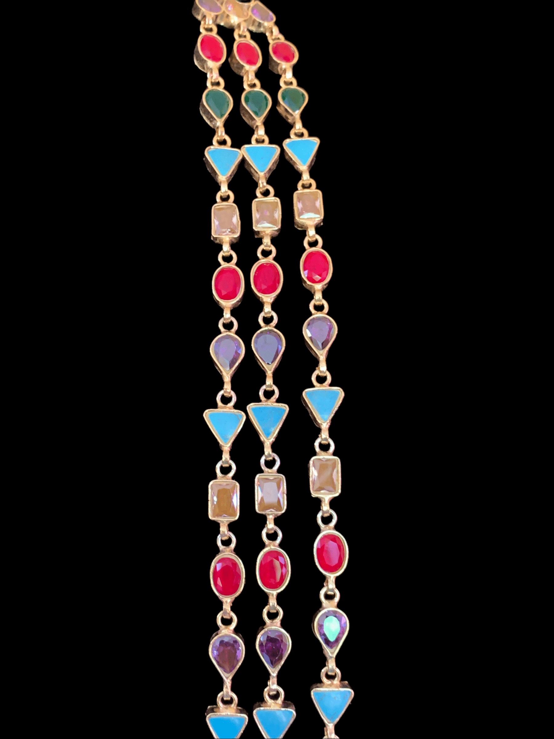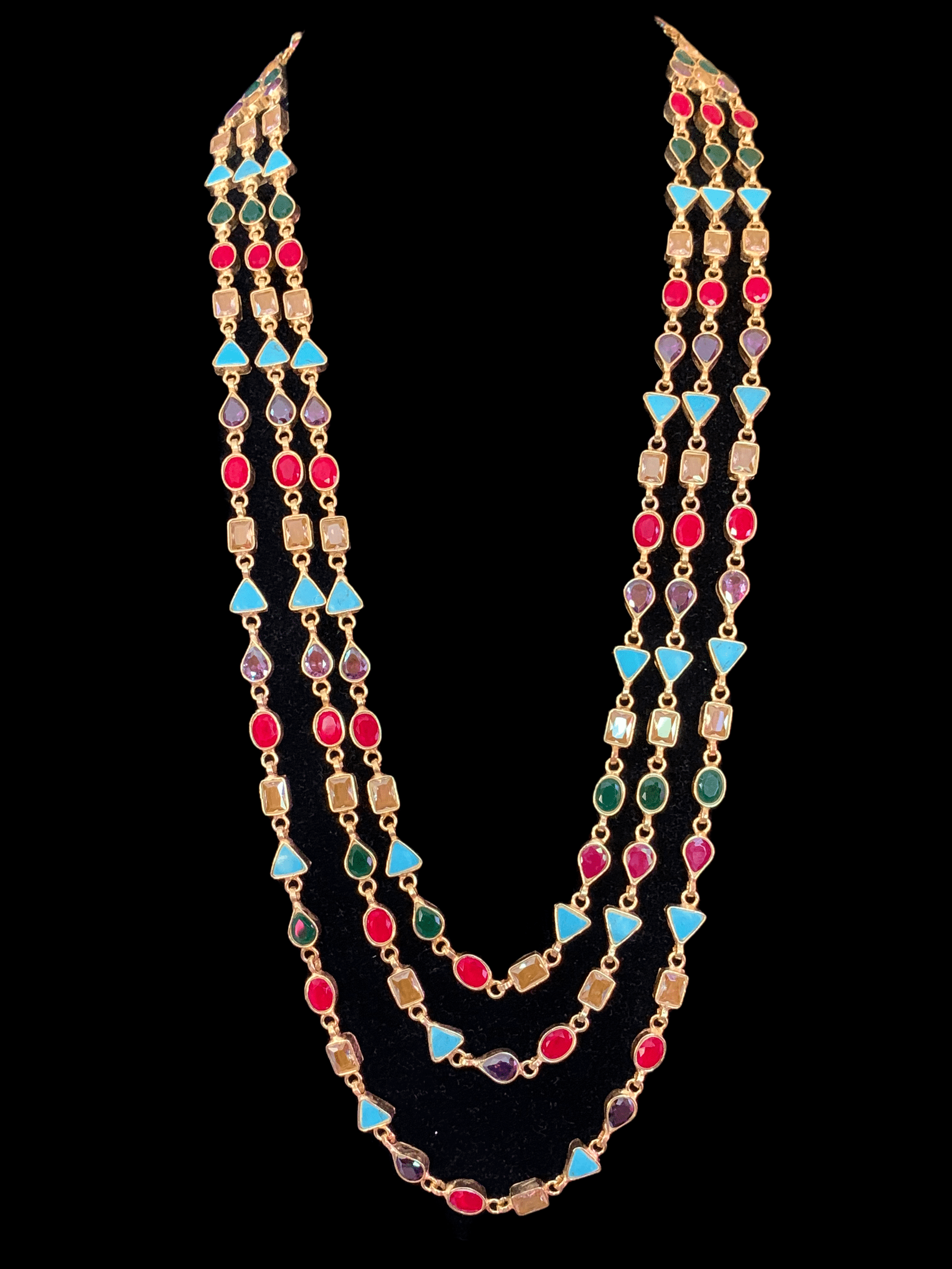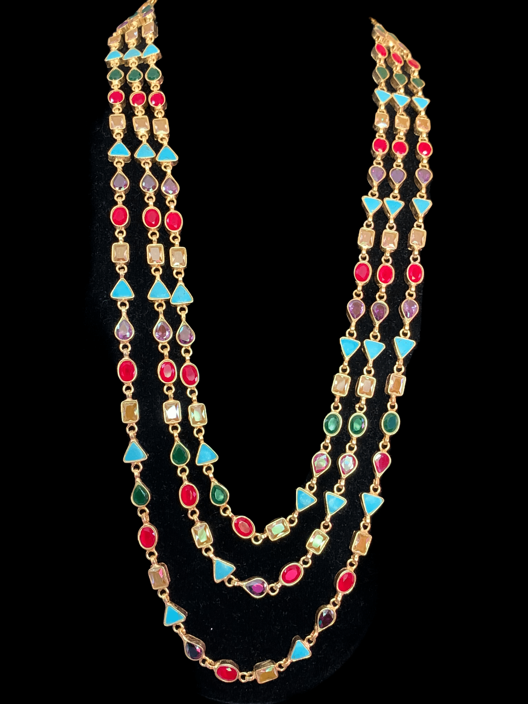 SAT45 Mona three layer navratan mala with earrings ( READY TO SHIP)