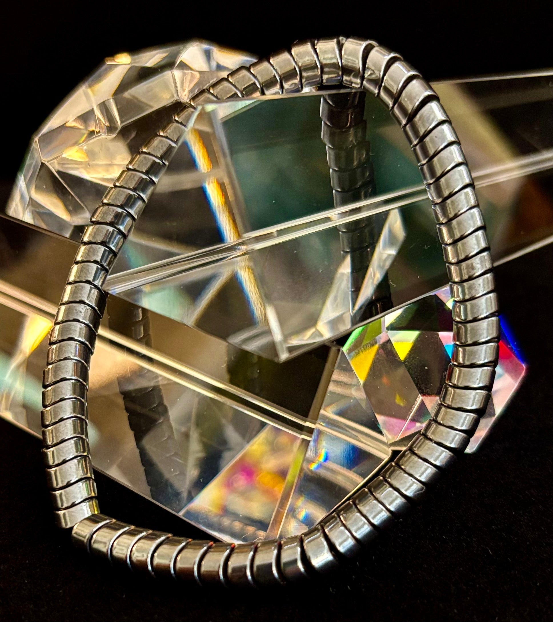 Known as the stone of protection and balance, hematite is believed to absorb negative energy, enhance focus, and restore strength—making this bracelet more than just a fashion accessory. Its smooth, snake-like structure flexes comfortably, ensuring durability and a secure fit for daily wear.