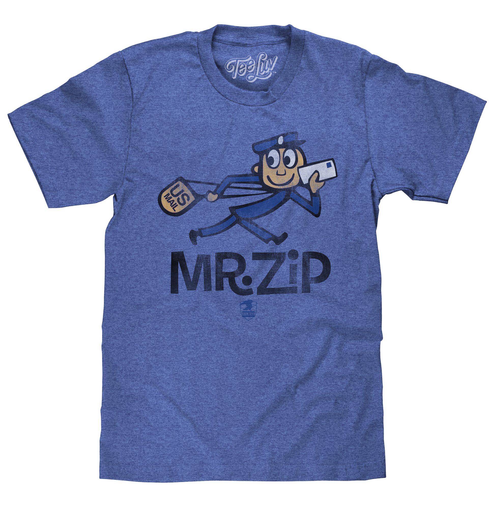Inspired by the dedication of the United States Postal Service - our team decided to create the perfect tee for fans to show off their love. We selected the classic Mr. Zip mail carrier character and gave the graphic a fun distressed look. To complete the retro feel - we printed it on the highest quality poly-cotton light blue heather tee around.