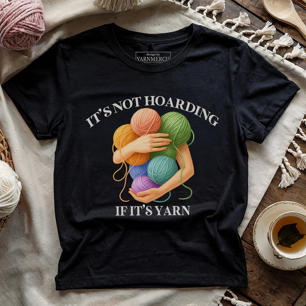 Wrap yourself in a soft declaration of yarn devotion! This forest green tee features a cozy embrace of colorful yarn balls cradled by loving arms—paired with the cheeky phrase: “It’s Not Hoarding If It’s Yarn.” A must‑have for every fiber enthusiast!