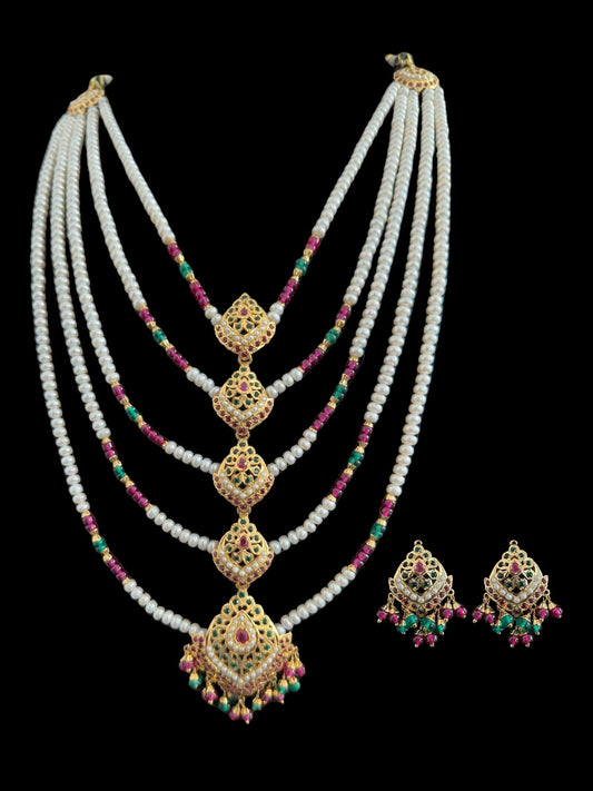 SAT83 Two layered fresh water pearl hyderabadi necklace set / satlada ( READY TO SHIP )