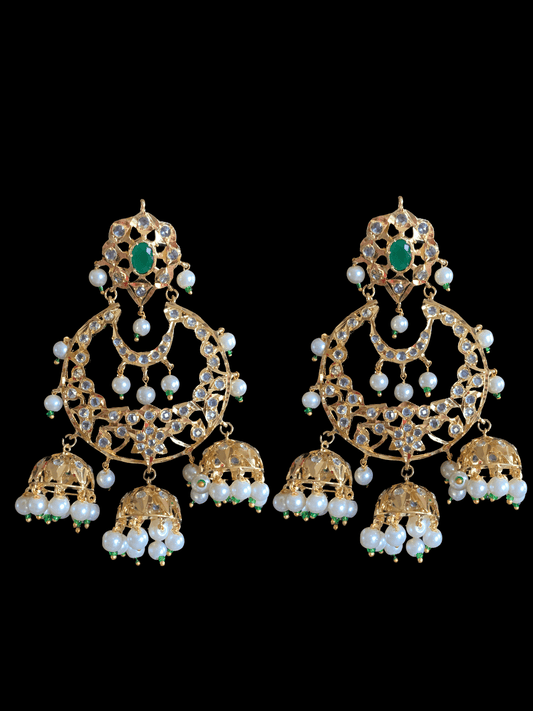 DER231 Heba Chandbali jhumka - green ( READY TO SHIP )
