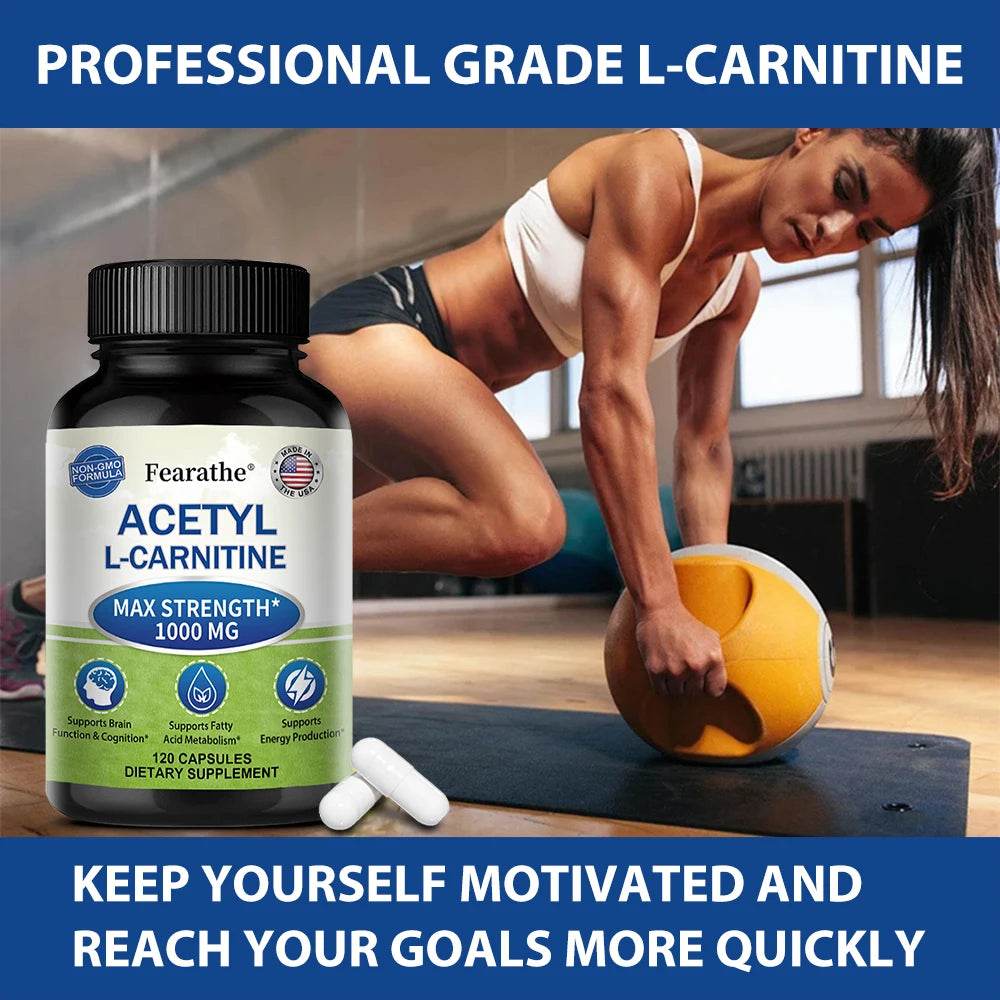Acetyl L-Carnitine Supplement 1000 mg, Brain and Nerve Cell Function, Fatty Acid Metabolism, Brain Enhancer