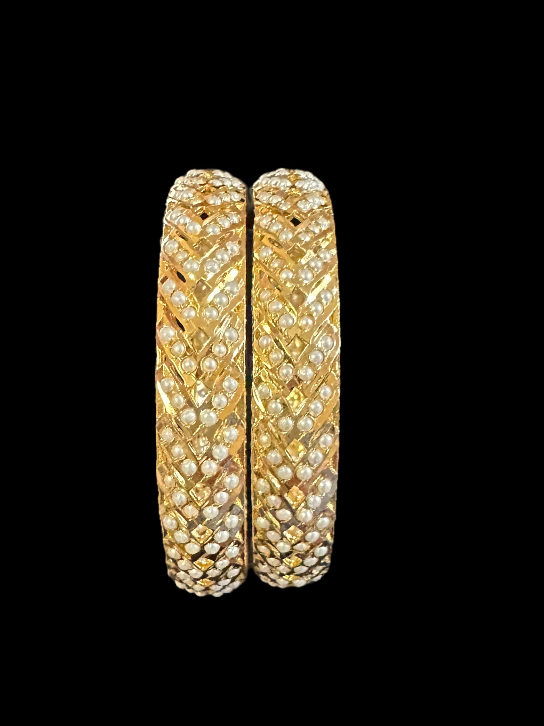 B152 Gold plated jadau bangles - pearls ( READY TO SHIP)
