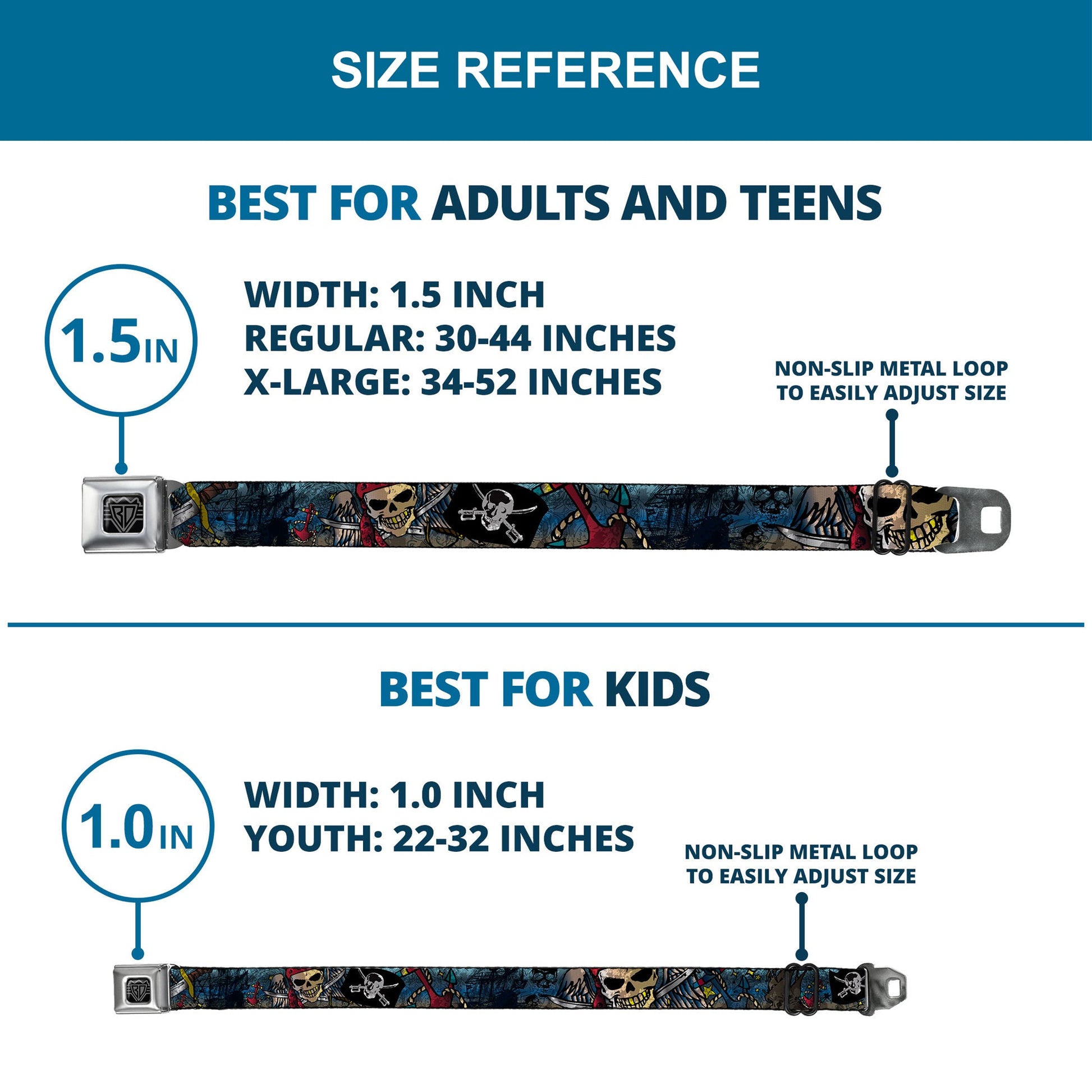 Buckle-Down's iconic Seatbelt Belt is a cool, smart, and exciting blend of fashion and function. Always a conversation starter, our Seatbelt Belt adjusts to perfectly fit your waist while showcasing your unique sense of style. Our Seatbelt Belts are made with authentic automotive style seatbelt buckles making them easy to open and close at the push of a button. Our adult-size Seatbelt Belts are 1.5 inches wide and our kid-sized Seatbelt belts are 1.0 inch wide. This product is Handcrafted in USA by Buckle-Down Inc. and officially licensed by Buckle-Down.