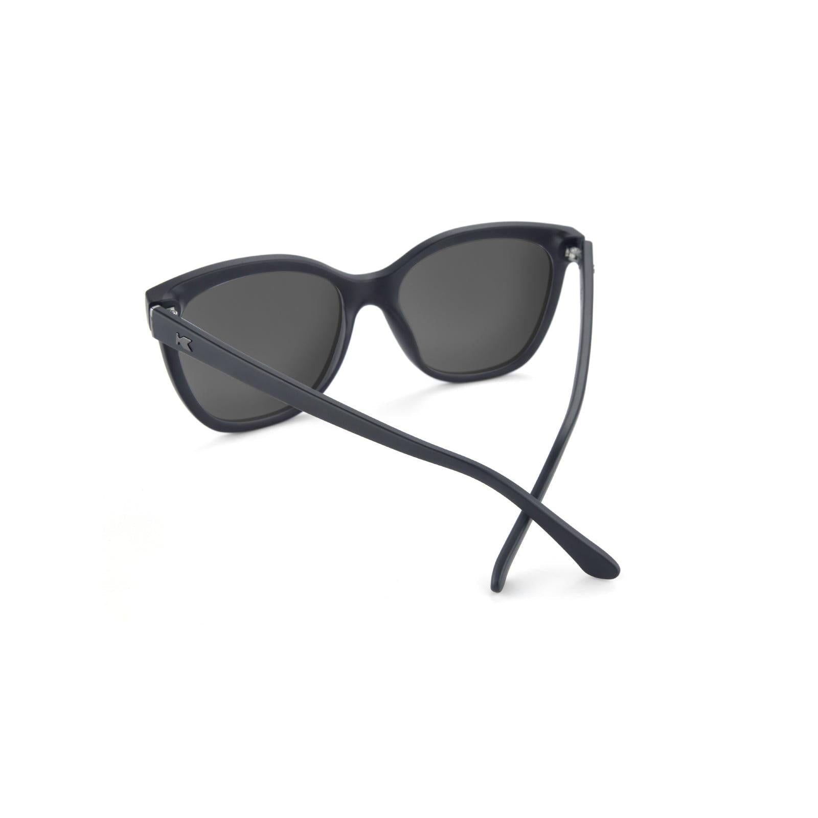 A hint of mystique and a whole lot of charm are what you get from these all-black polarized sunglasses with black smoke lenses. Gunmetal K logos keep the vibe going, and the subtle hint of cat-eye adds a chic flair. Knockaround sunglasses feature FDA approved, impact resistant lenses, UV400 protection, and come with a protective pouch. For your everyday commute, special occasions, and every event in between, these polarized shades offer sophistication and elegance.