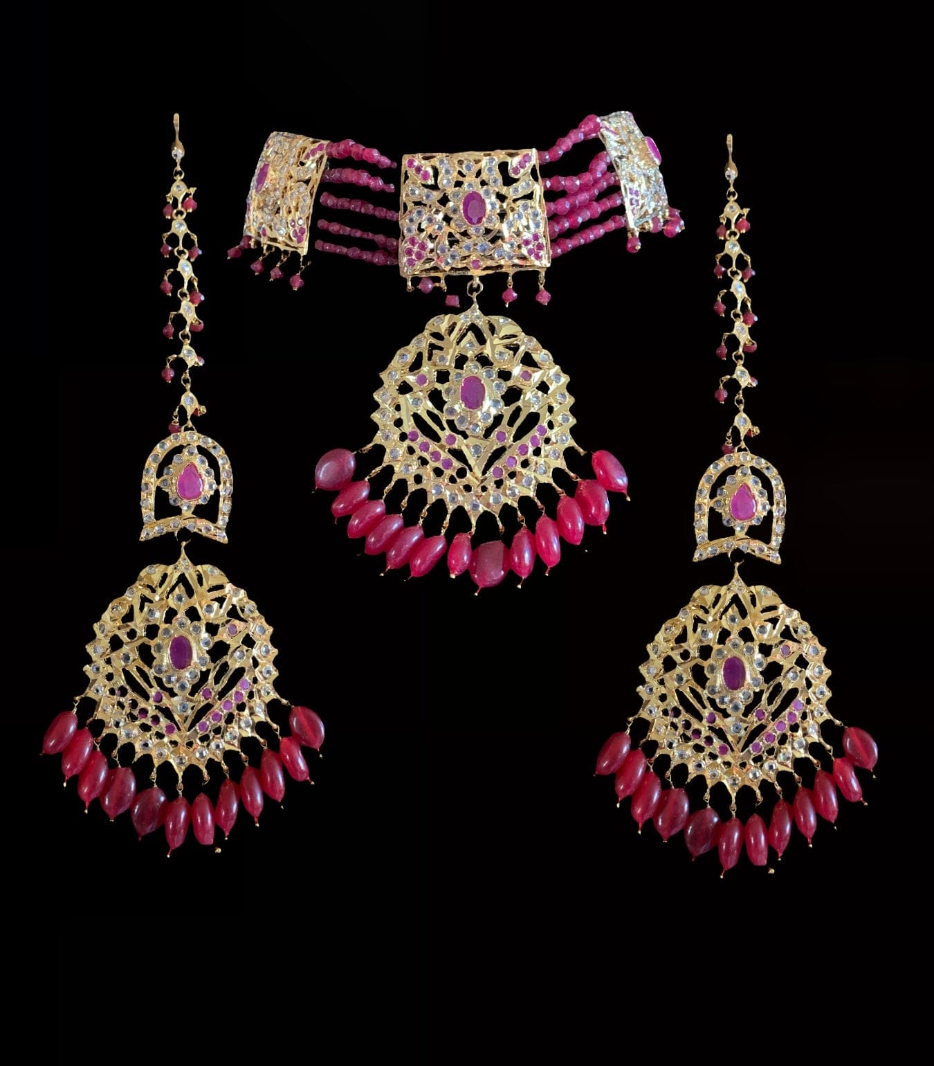 includes choker , earrings , jhoomar and tika