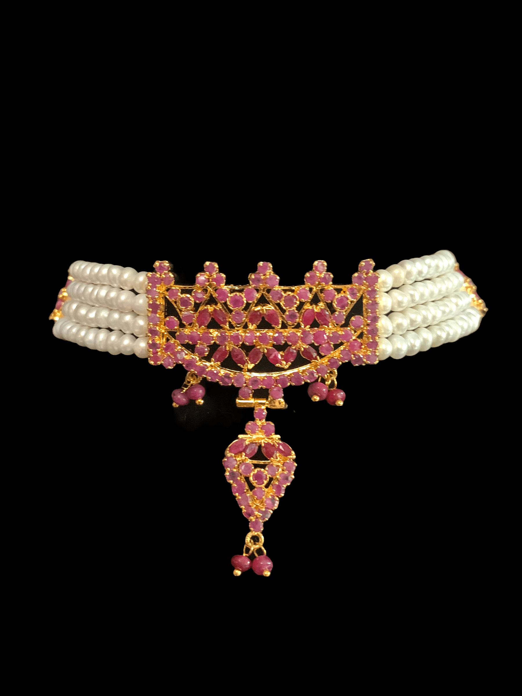 C117 Ruby choker with earrings ( READY TO SHIP )