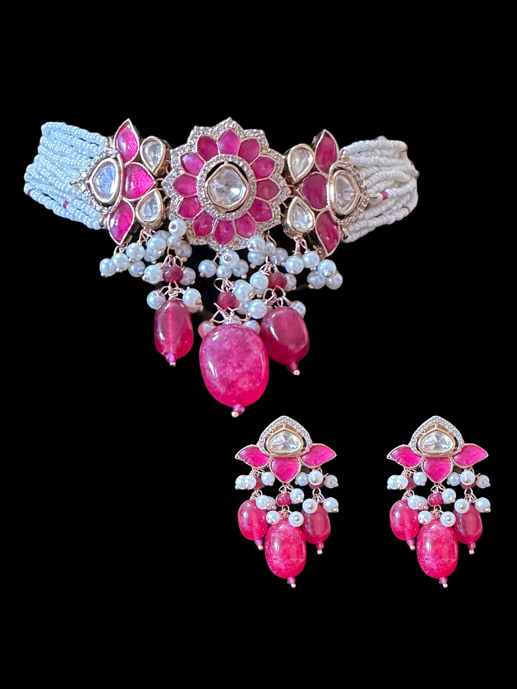 C285 gold plated choker with pearls and green beads ( READY TO SHIP )