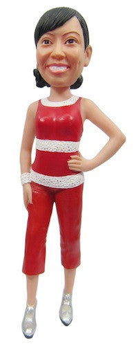 Female Bobblehead Wearing Red Pants and a Red Shirt with White Lace