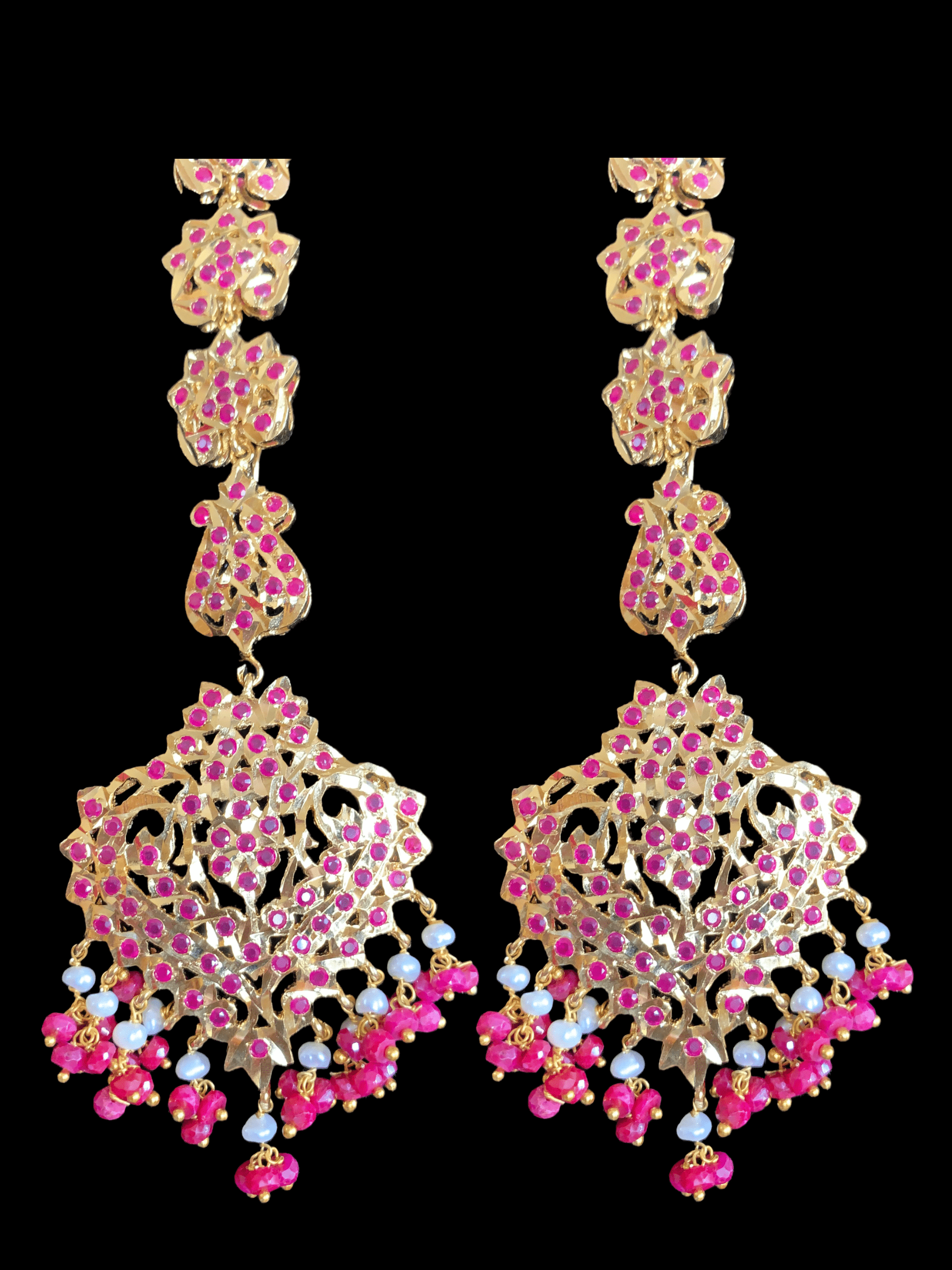 DER131 Afreen natural ruby with fresh water pearl earrings (SHIPS IN 4 WEEKS )