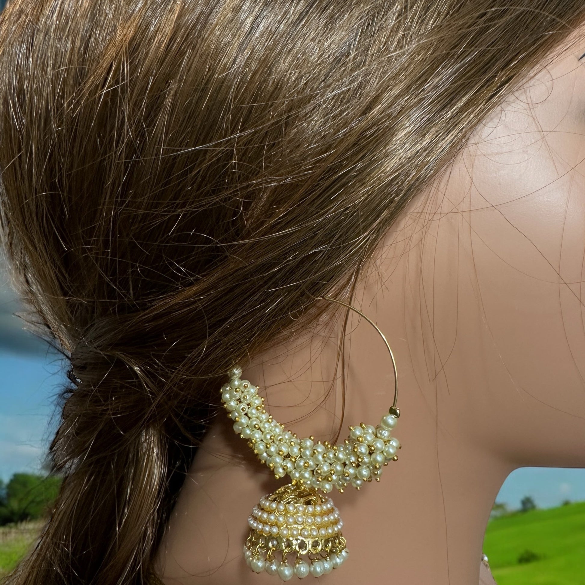 DER138 Gold plated pearl studded hoop earrings (READY TO SHIP )