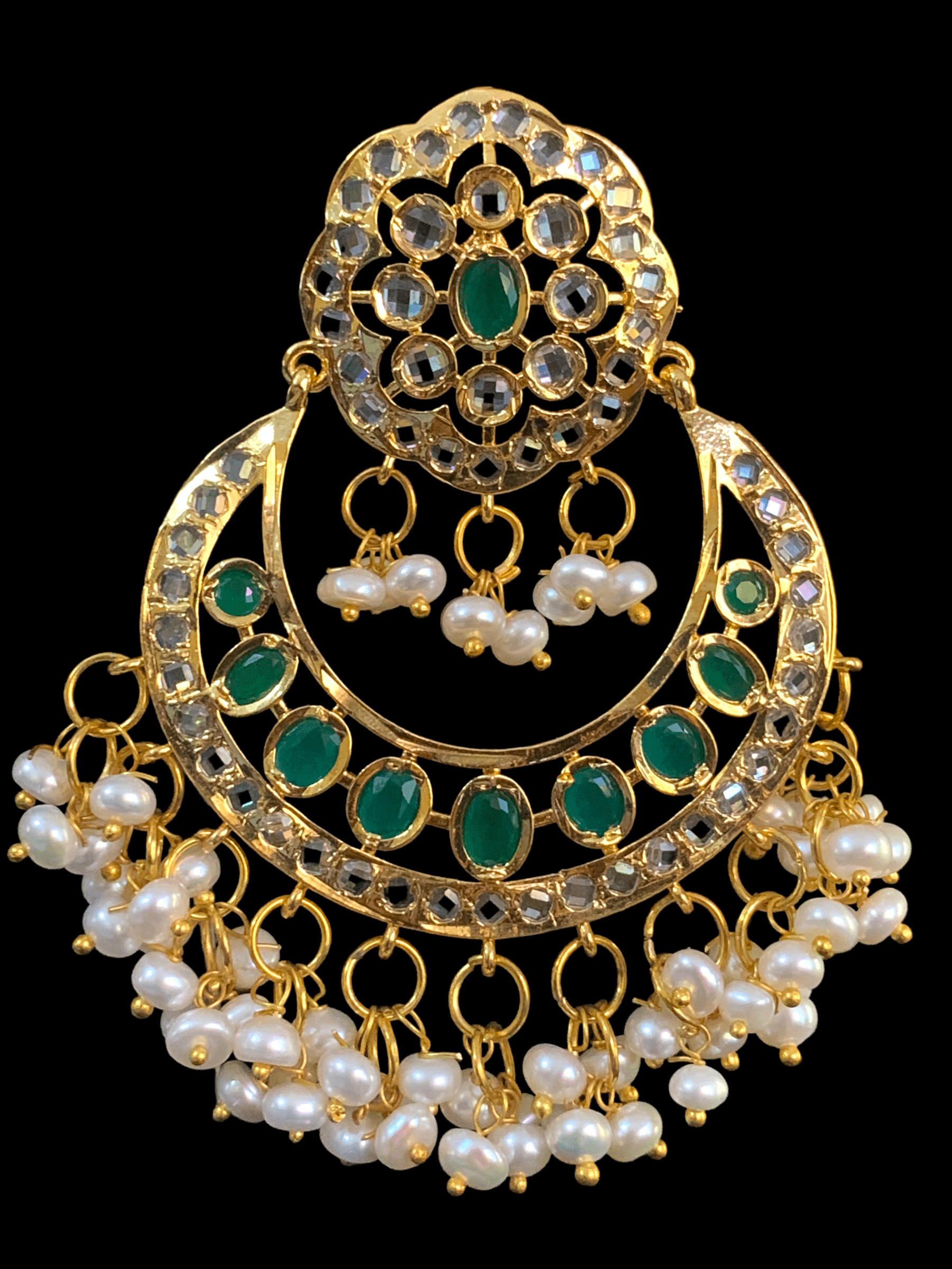 DER264 kainat Chandbali in fresh water pearls - green ( READY TO SHIP )
