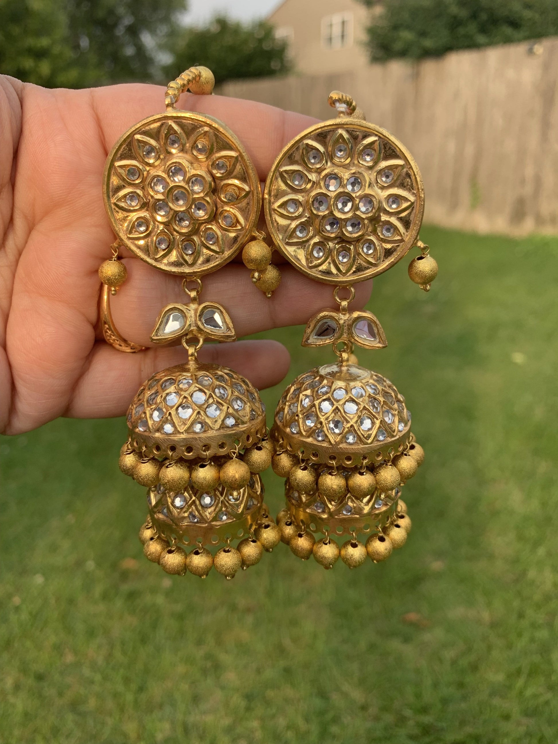 DER295 Anya kundan jhumka two layered (READY TO SHIP)
