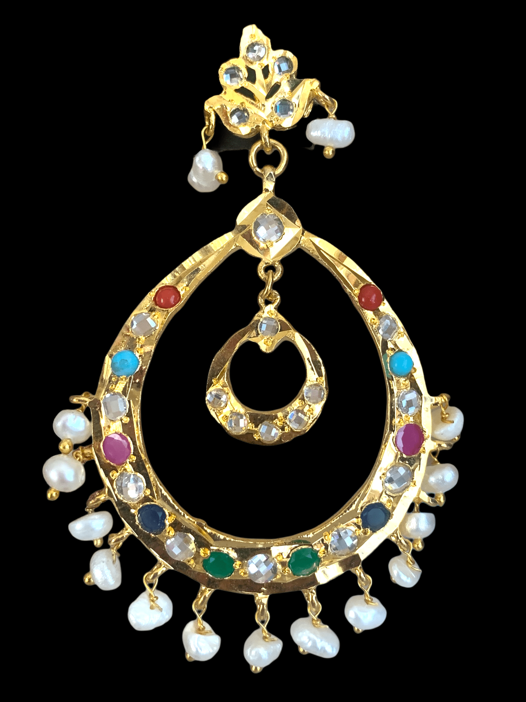 DER321 Navratan Chandbali in real pearls ( READY TO SHIP )