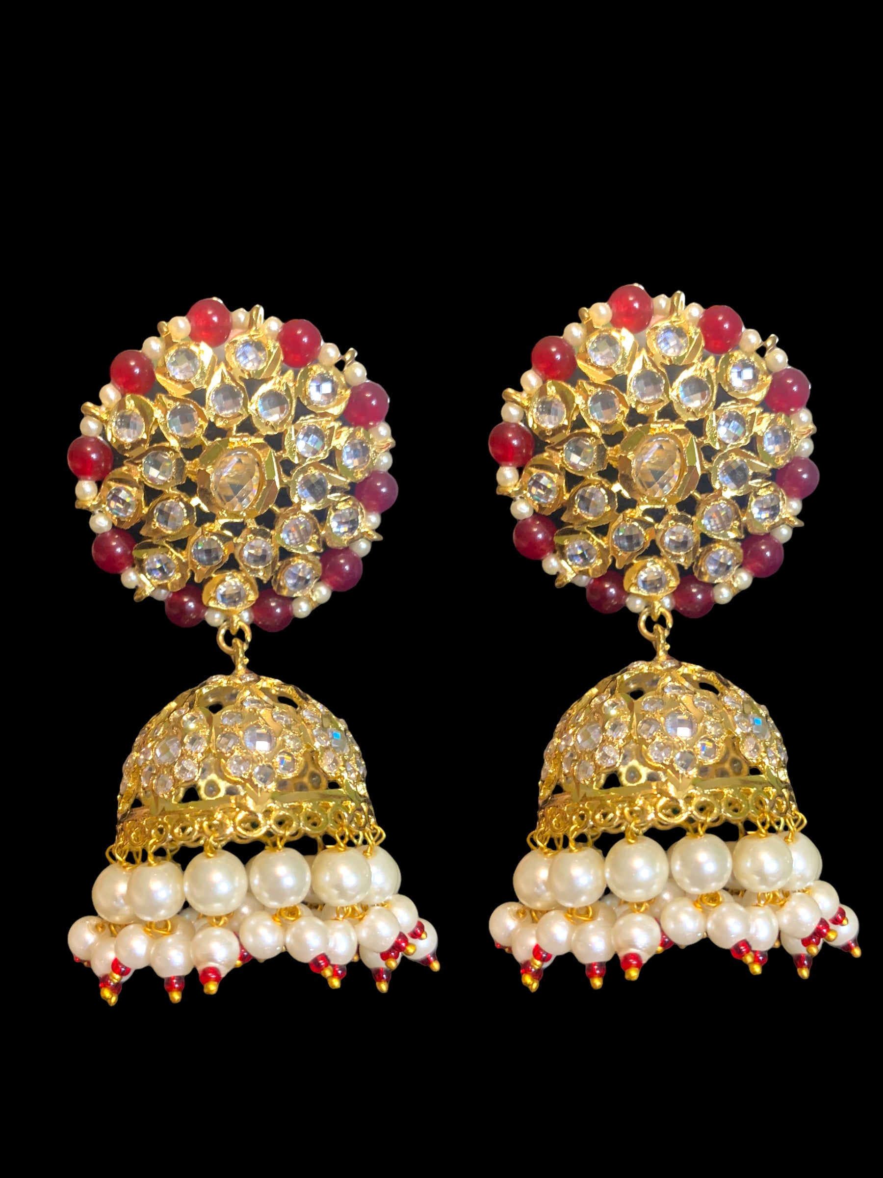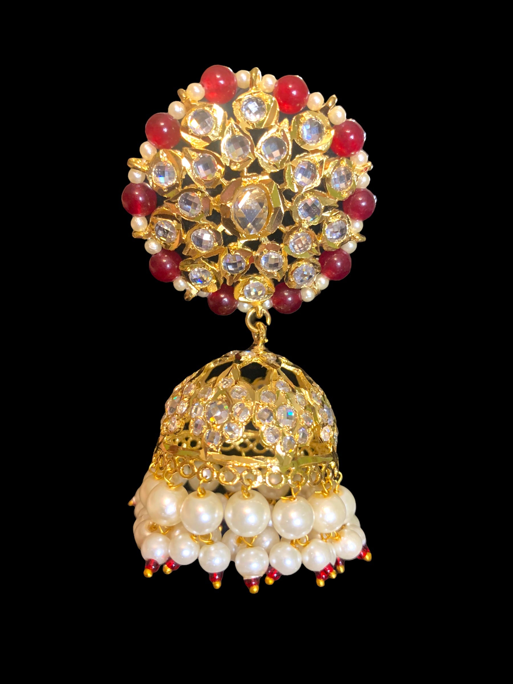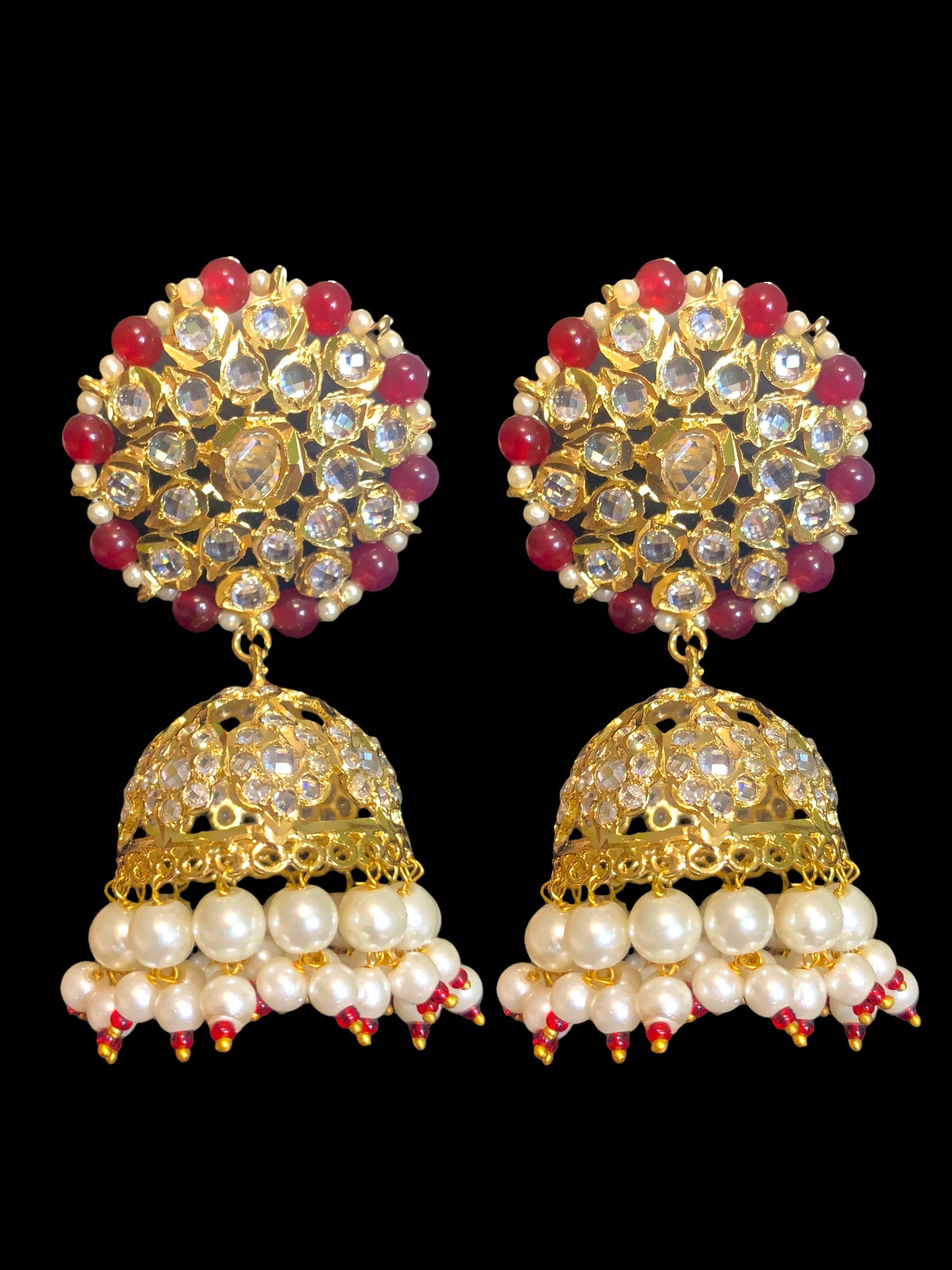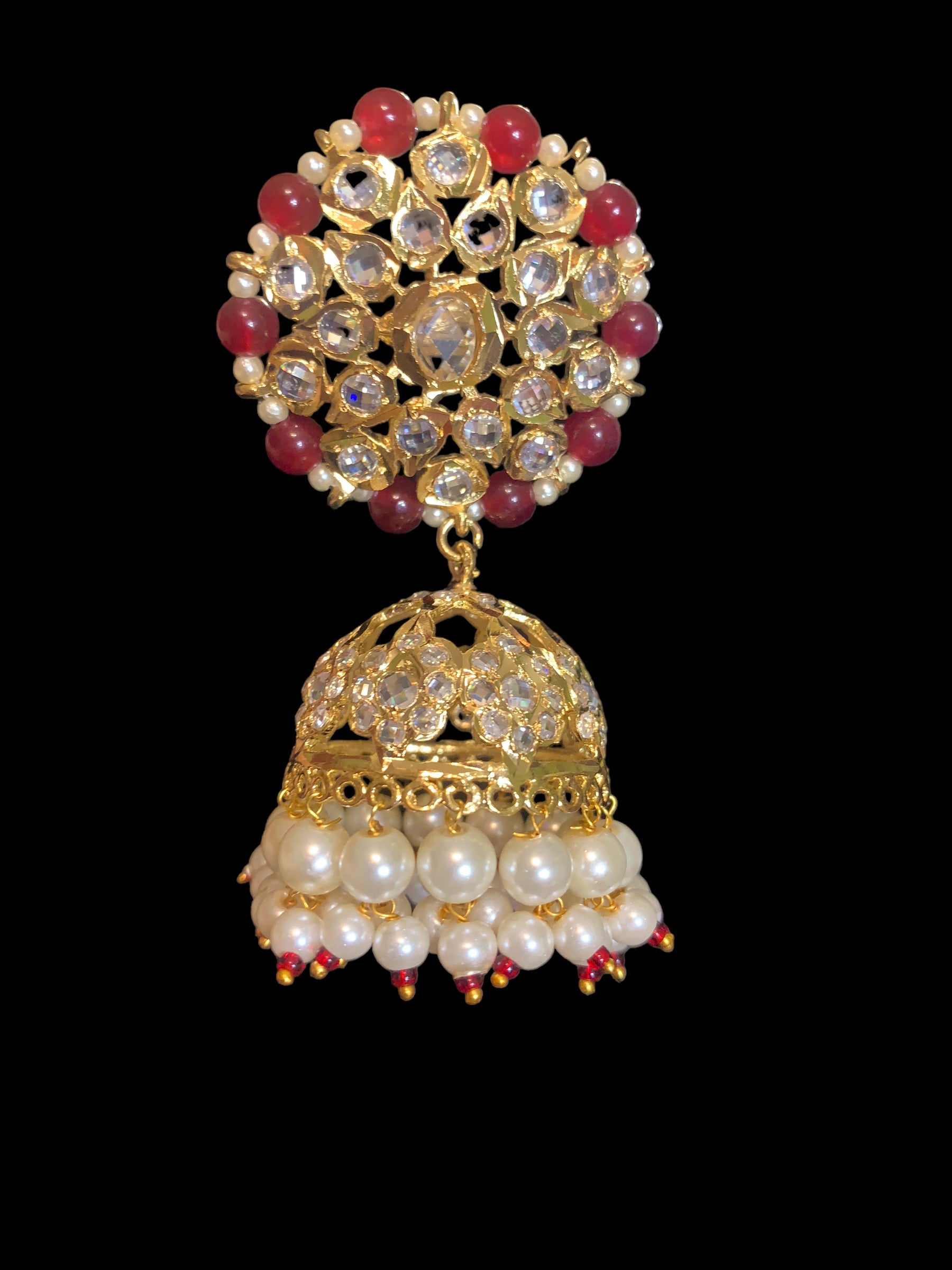 DER399 Amra hyderabadi jhumka in pearls with ruby beads - large jhumka ( READY TO SHIP)