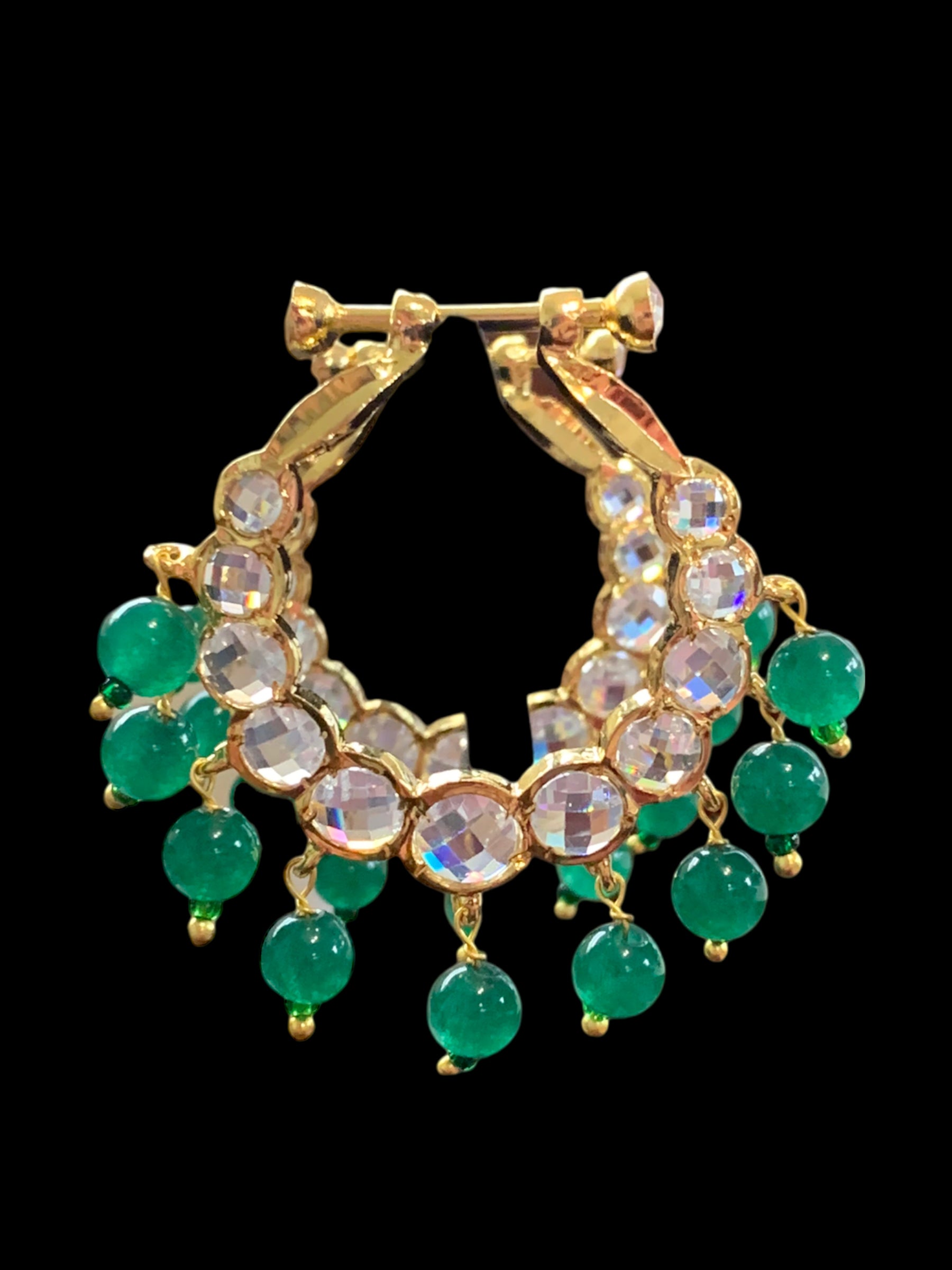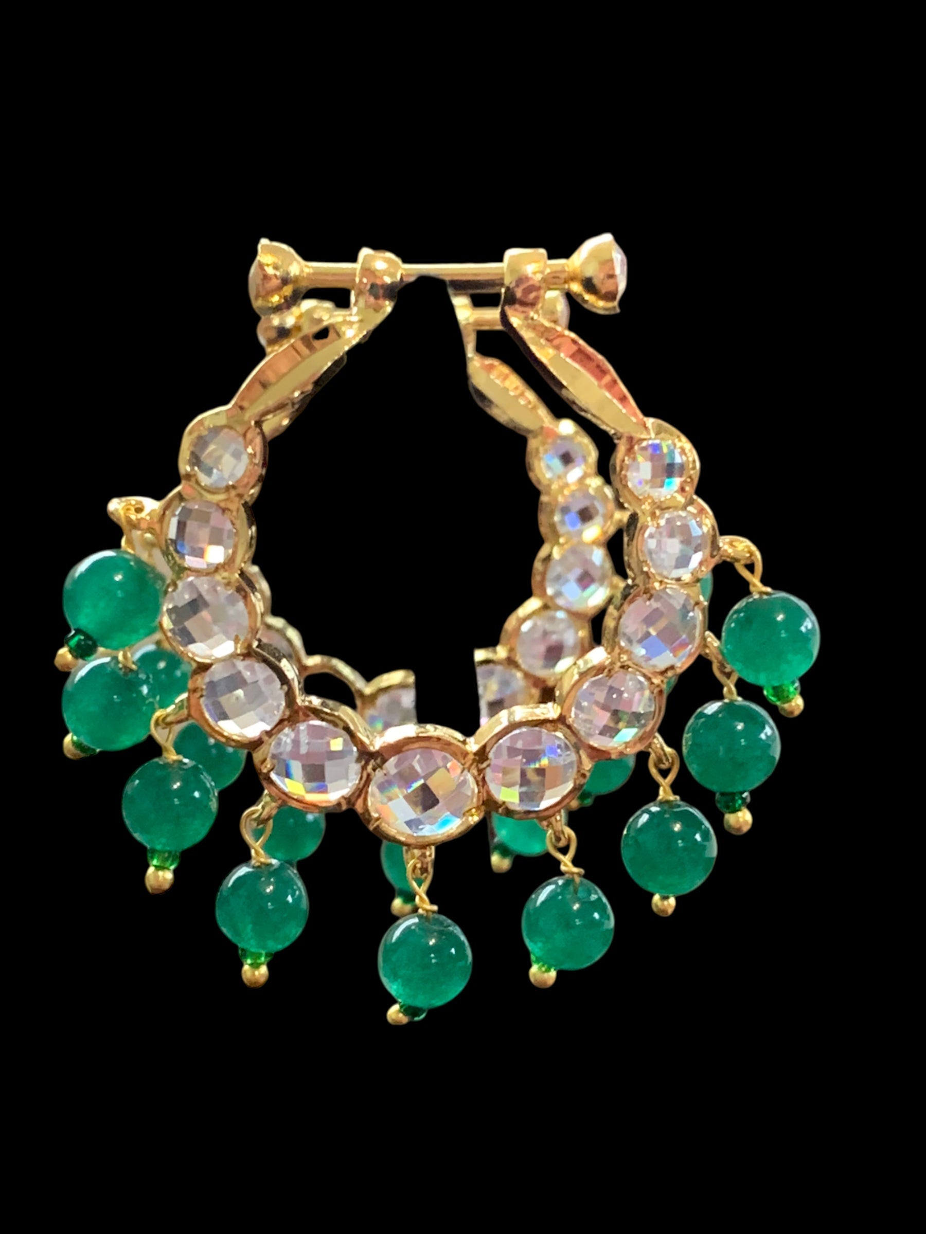 made using authentic Hyderabadi polki , semi precious emerald beads and 22carat gold plating