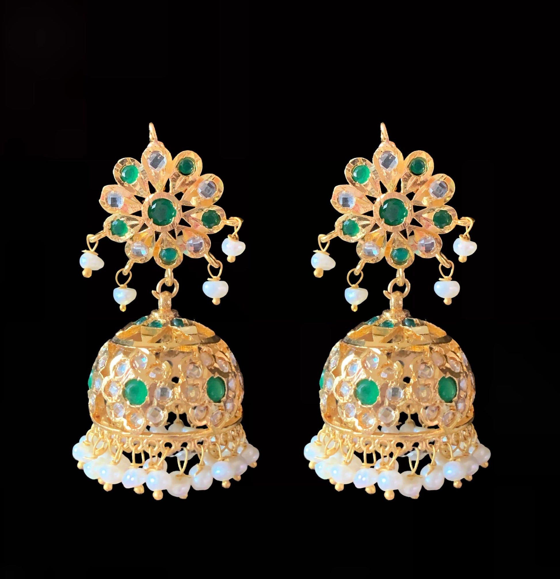 DER613 Navya fresh water pearls jhumka - emerald ( READY TO SHIP )
